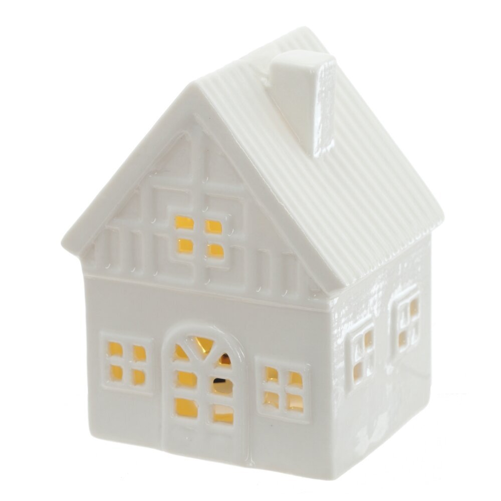 Декоративная фигурка из белого фарфора Домик с подсветкой — это элегантное и стильное украшение, которое привнесет в ваш дом атмосферу уюта и изысканности. Фигурка выполнена из высококачественного белого фарфора, что придает ей утончённый и светлый вид. Особенностью изделия является встроенная подсветка, которая создаёт мягкое, тёплое сияние, подчеркивающее детали фарфоровой поверхности и придающее декору особое очарование в тёмное время суток. Такое украшение идеально подойдет оформления интерьера в праздничный период или как самостоятельный акцент на полке, столе или окне. Лёгкость и изысканность фарфора в сочетании с нежным светом создают волшебную атмосферу и привлекают внимание, становясь ярким и незаменимым элементом декора.