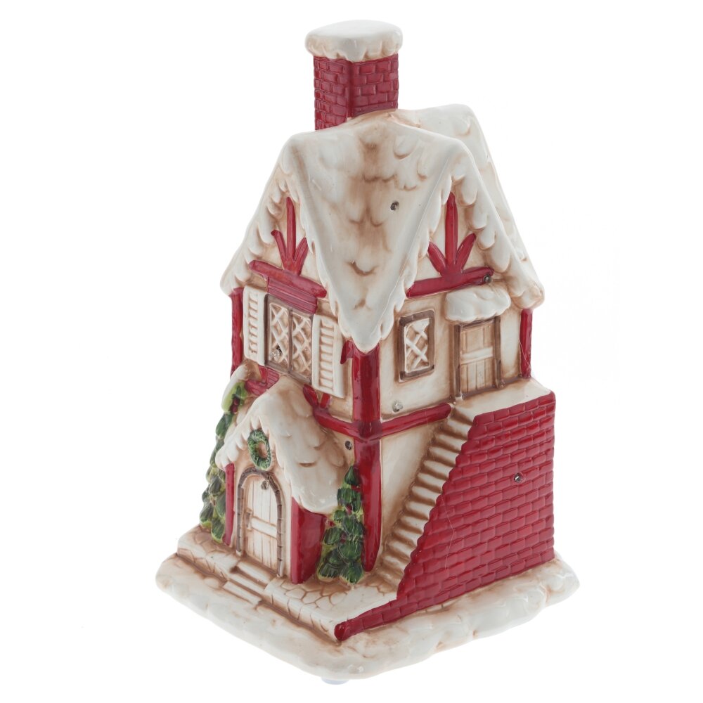 Эта очаровательная миниатюра станет прекрасным дополнением к вашему праздничному декору. Домик выполнен в классических новогодних цветах , украшен новогодним декором , что создает атмосферу волшебного Рождества. Встроенная подсветка, спрятанная в домике, создает мягкое и теплое свечение, которое делает его еще более уютным и привлекательным. В темное время суток, окна домика будут ярко гореть, напоминая о волшебстве праздника. Разместите фигурку на каминной полке, на праздничном столе или на полке с другими новогодними украшениями - она будет гармонично вписываться в любой интерьер и создавать атмосферу праздника.