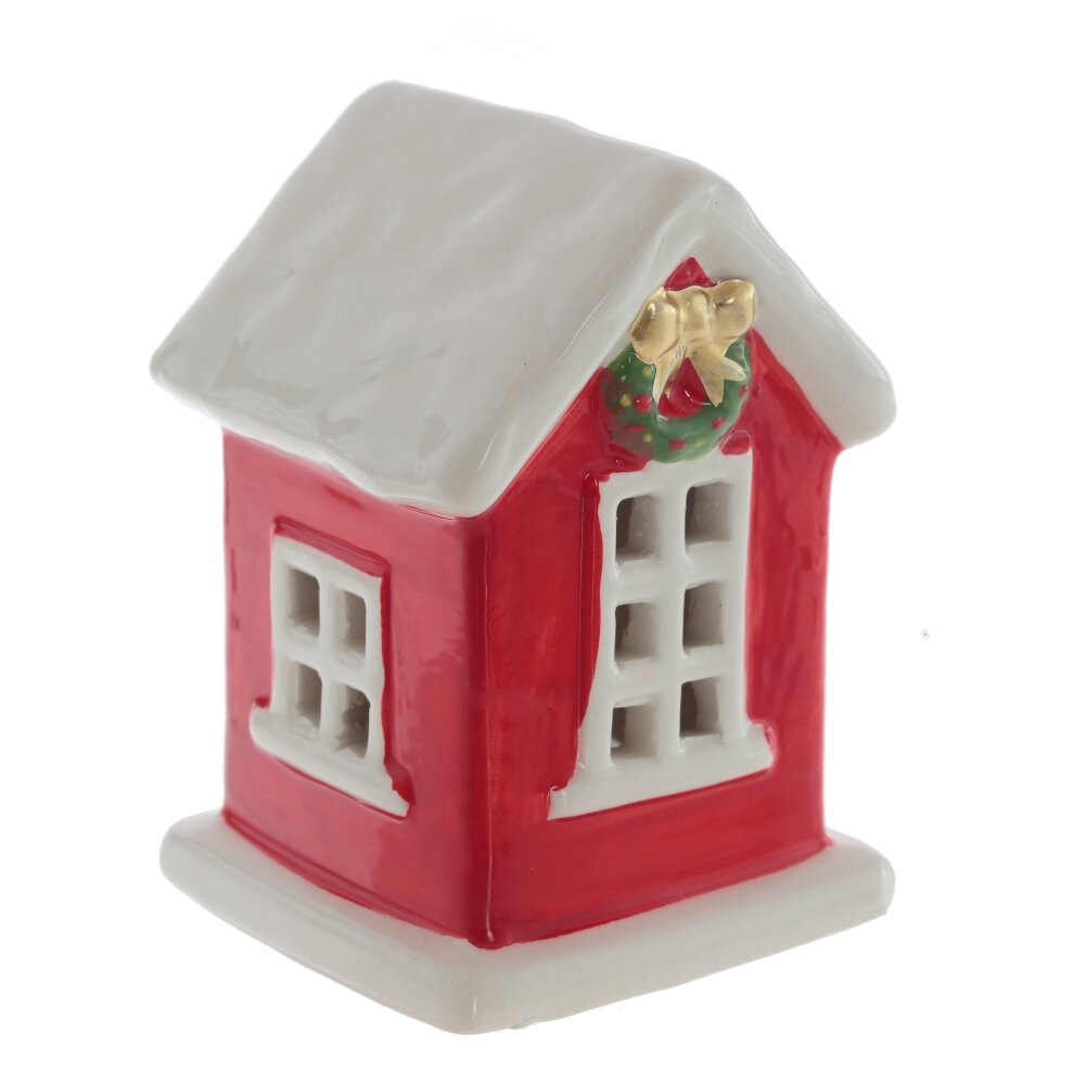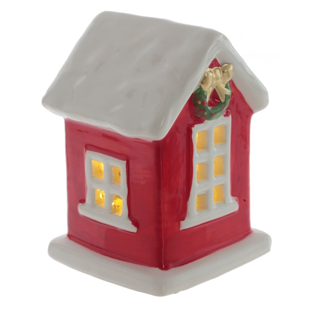 Эта очаровательная миниатюра станет прекрасным дополнением к вашему праздничному декору. Домик выполнен в классических новогодних цветах , украшен новогодним декором , что создает атмосферу волшебного Рождества. Блестящая поверхность фарфора придает фигурке особое праздничное очарование.Встроенная подсветка, спрятанная в домике, создает мягкое и теплое свечение, которое делает его еще более уютным и привлекательным. В темное время суток, окна домика будут ярко гореть, напоминая о волшебстве праздника. Разместите фигурку на каминной полке, на праздничном столе или на полке с другими новогодними украшениями - она будет гармонично вписываться в любой интерьер и создавать атмосферу праздника.