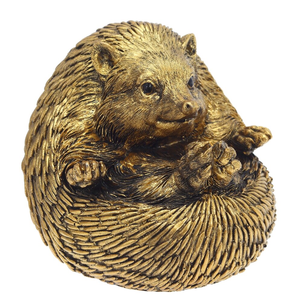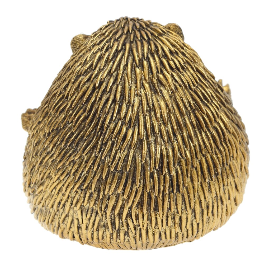 Декоративная фигурка "Еж" изготовлена из качественных полимерных материалов и выполнена в изысканном золотистом цвете. Ее детальная проработка делает фигурку особенно выразительной: каждая иголочка и черты мордочки переданы с высокой степенью реалистичности. Ёжик находится в забавной позе – свернувшись в клубочек, что придает ему очаровательный вид. Такой элемент декора украсит интерьер гостиной, спальни или рабочего кабинета, а также может стать отличным подарком для любителей оригинальных сувениров и животных. Компактный размер и прочный материал обеспечивают долговечность, позволяя наслаждаться красивым украшением долгие годы.