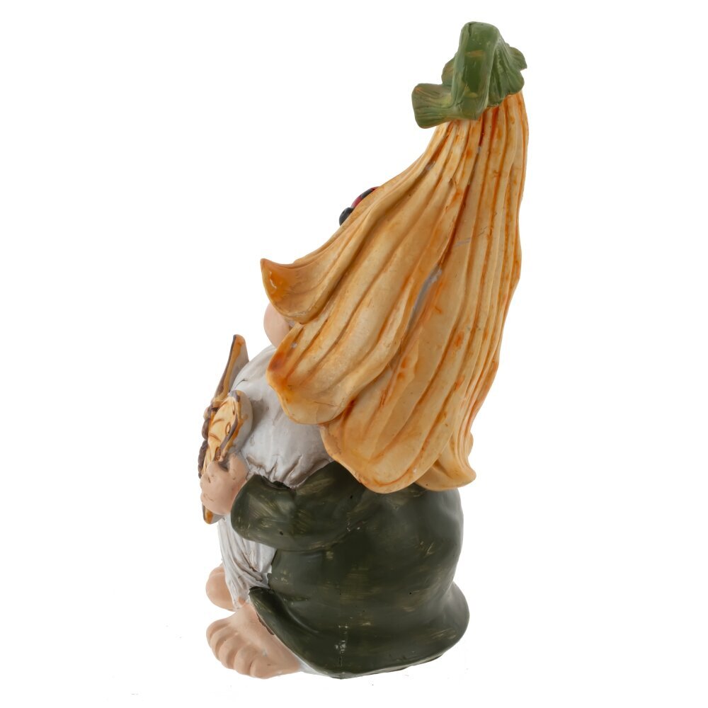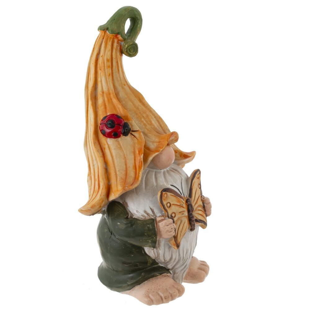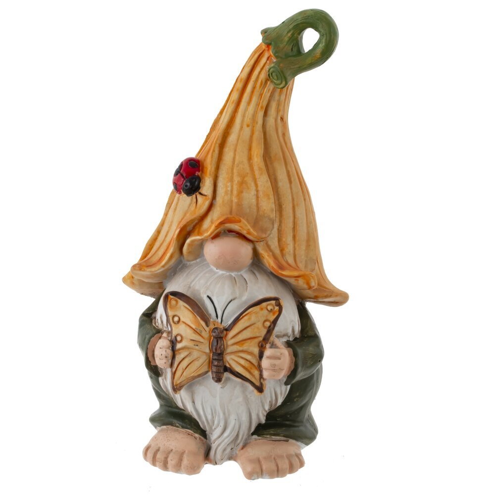 Фигурка в виде Гномика в колпачке из цветка. В руках гном держит большую бабочку. Эта нежная композиция призывает нас ценить красоту природы, символизируя радость жизни. Будет прекрасным украшением для интерьера дома, добавляя в него нотки фантазии и веселья.