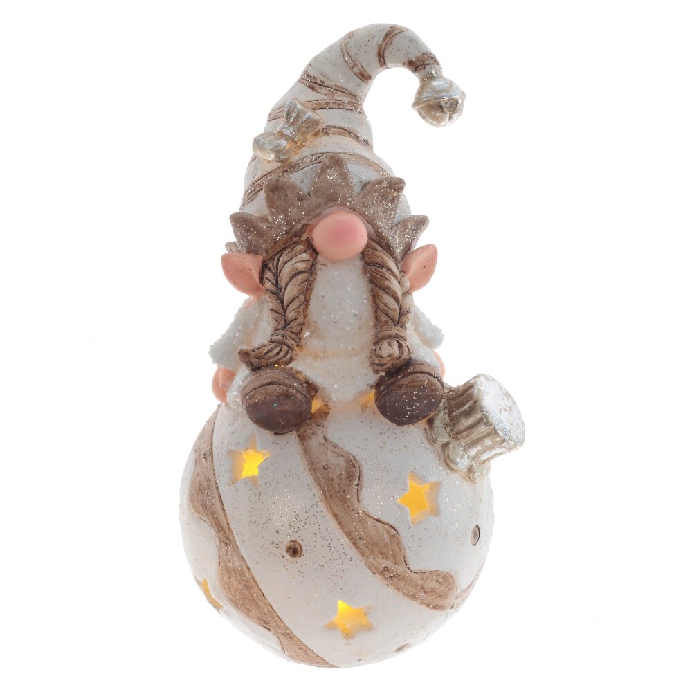 Декоративная фигурка "Гном" с подсветкой – это веселое новогоднее украшение, выполненное из полимерных материалов. Гномы представлены в двух вариантах: с косичками либо с бородой. Фигурки покрыты искрящимся глиттером, что придает им праздничный вид. Каждый из гномов сидит на шаре с подсветкой, создающей теплый свет через маленькие отверстия. Подсветка работает от двух батареек LR44, которые включены в комплект. Эти фигурки создадут атмосферу волшебства в новогодние праздники. Цена указана за одно изделие.