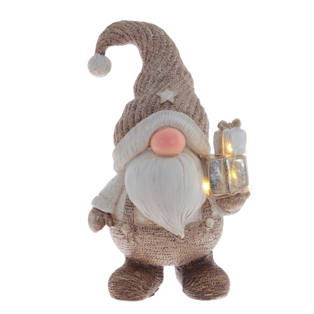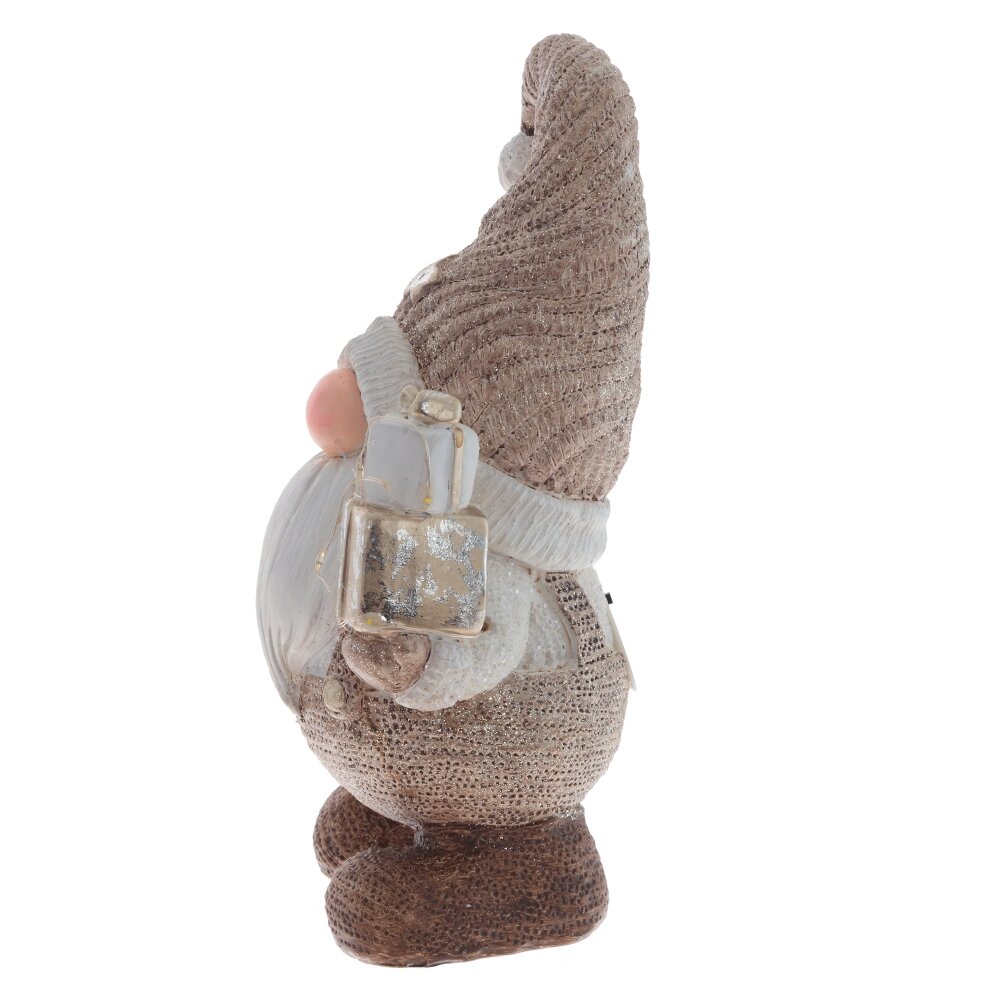 Декоративная фигурка "Гном" с подсветкой — это очаровательный элемент декора, который добавит волшебства и уюта в любой интерьер. Изготовлена из прочных полимерных материалов в стильном бежевом цвете. Длинный колпак придает гному забавный вид. В его ручках находятся подарки, которые подсвечиваются теплым белым светом, создавая праздничную атмосферу. Подсветка работает от двух батареек типа LR44, которые входят в комплект. Фигурка станет отличным подарком для близких и украсит ваш дом, особенно в праздничный сезон.