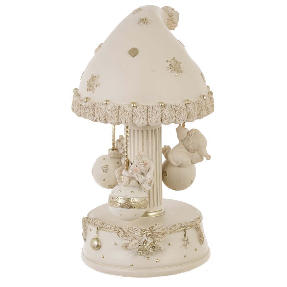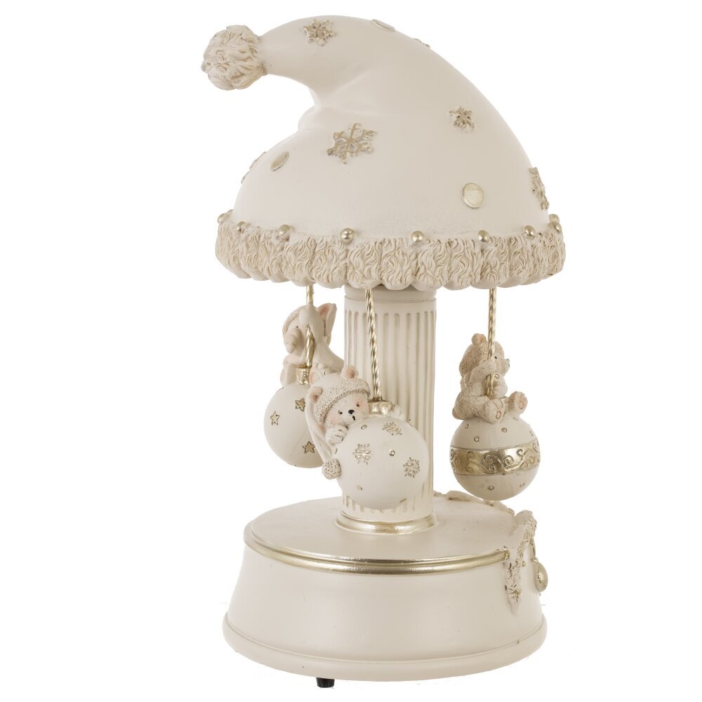 Элегантная декоративная карусель из прочных полимерных материалов выполнена в благородном белом цвете и станет изысканным украшением вашего интерьера. Фигурка оснащена функцией движения и музыкальным сопровождением, что придаёт ей особое очарование и наполняет пространство атмосферой волшебства. Детально проработанный дизайн с плавными линиями и утонченными элементами делает карусель не только стильным аксессуаром, но и настоящей жемчужиной праздничного декора. Идеально подойдёт для создания уюта в доме, оформления витрин или в качестве оригинального подарка для ценителей красоты и зимней сказки.