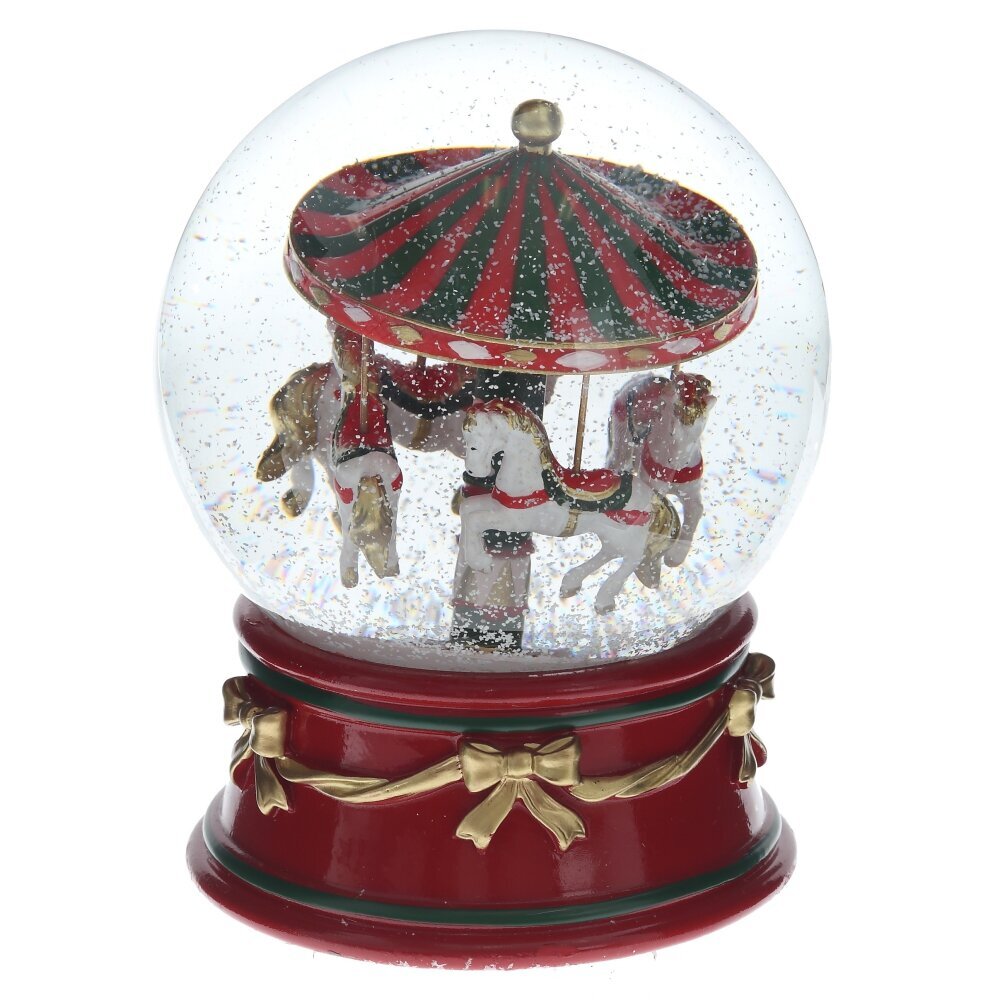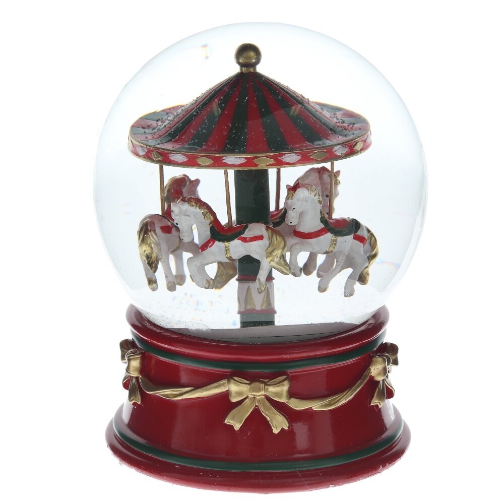 Декоративная фигурка «Карусель в стеклянном шаре» — это волшебный элемент новогоднего декора, который завораживает с первого взгляда. Выполненная в традиционных цветах праздника — красном, зелёном и золотом — она идеально впишется в любое праздничное оформление. Стеклянный купол отражает свет и усиливает эффект волшебства. Эта фигурка станет прекрасным украшением для дома, офиса или праздничного стола, а также душевным подарком, способным подарить радость и ощущение настоящего новогоднего чуда.