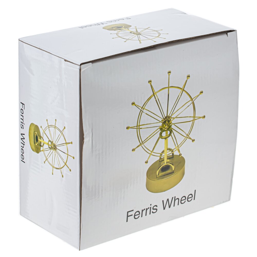 Фигурка- маятник "Колесо Обозрения" - замечательная вещь для снятия напряжения, которая поможет расслабиться и улучшит настроение. Особенно маятник будет актуален на рабочем месте, в офисе или кабинете. Неторопливо вращающийся и крутящийся в разную сторону магнитный маятник несомненно окажется нужным, полезным подарком. Фигурка работает от 4 батареек АА ( не прилагаются).