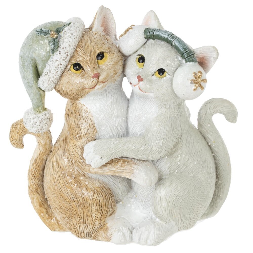 Стильная новогодняя фигурка “Кошечки”. Эта милая зимняя композиция, выполнена в пастельных тонах и придаст вашему интерьеру атмосферу сказки и уюта. Эта фигурка станет идеальным украшением для зимнего праздника, ее можно повесить на елку или сделать частью новогодней композиции. Так же она может стать оригинальным подарком вашим близким на Новый год.