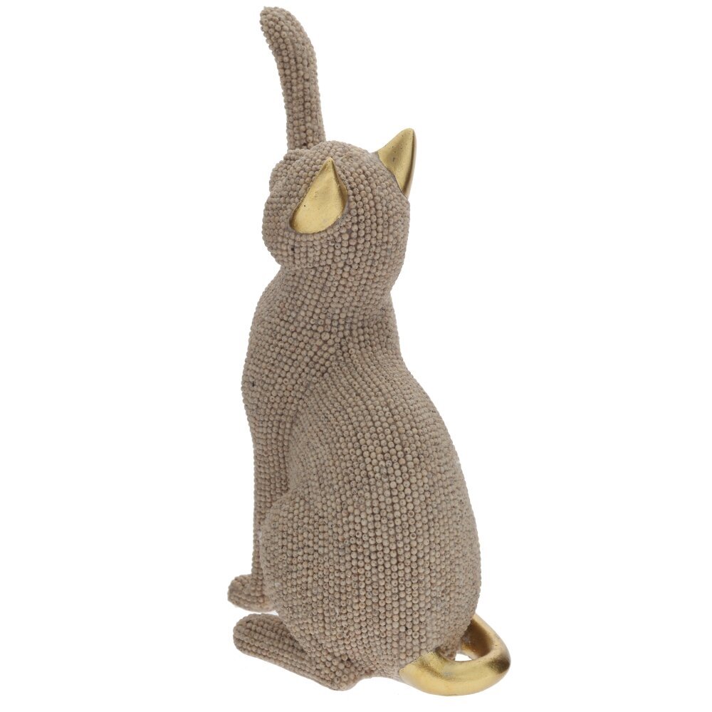 Декоративная фигурка «Кошка» станет ярким акцентом в современном интерьере. Изделие выполнено из прочных полимерных материалов и имеет необычную фактурную поверхность, состоящую из множества мелких шариков, что создаёт эффект объёмного бисерного покрытия. Бежевый цвет выгодно подчёркивается золотистыми ушками и кончиком хвоста, придающими композиции нотку роскоши и утончённости. Кошка изображена в изящной позе с поднятой лапой, благодаря чему фигурка выглядит живой и динамичной. Идеально подойдёт для оформления гостиной, спальни, кабинета или приёмной, а также станет оригинальным подарком для любителей кошек и ценителей стильного декора.