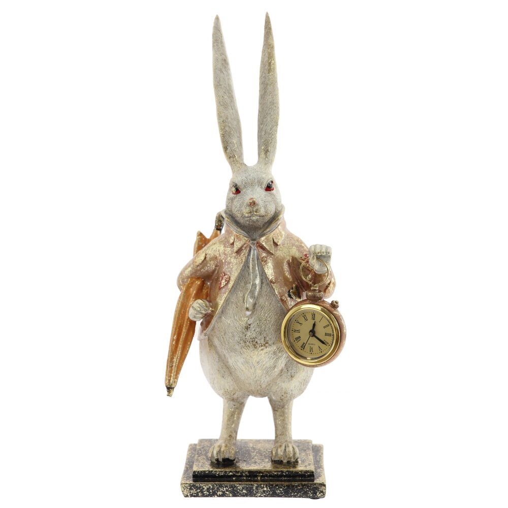 Фигурка Зайца с декоративными часами. Красота этого персонажа вне конкуренции. Его роскошный наряд притягивает, а воображение рисует удивительный сказочный дворец. Представлена в двух вариантах. Часы с римскими цифрами, работают от одной батарейки L1154 (прилагается).