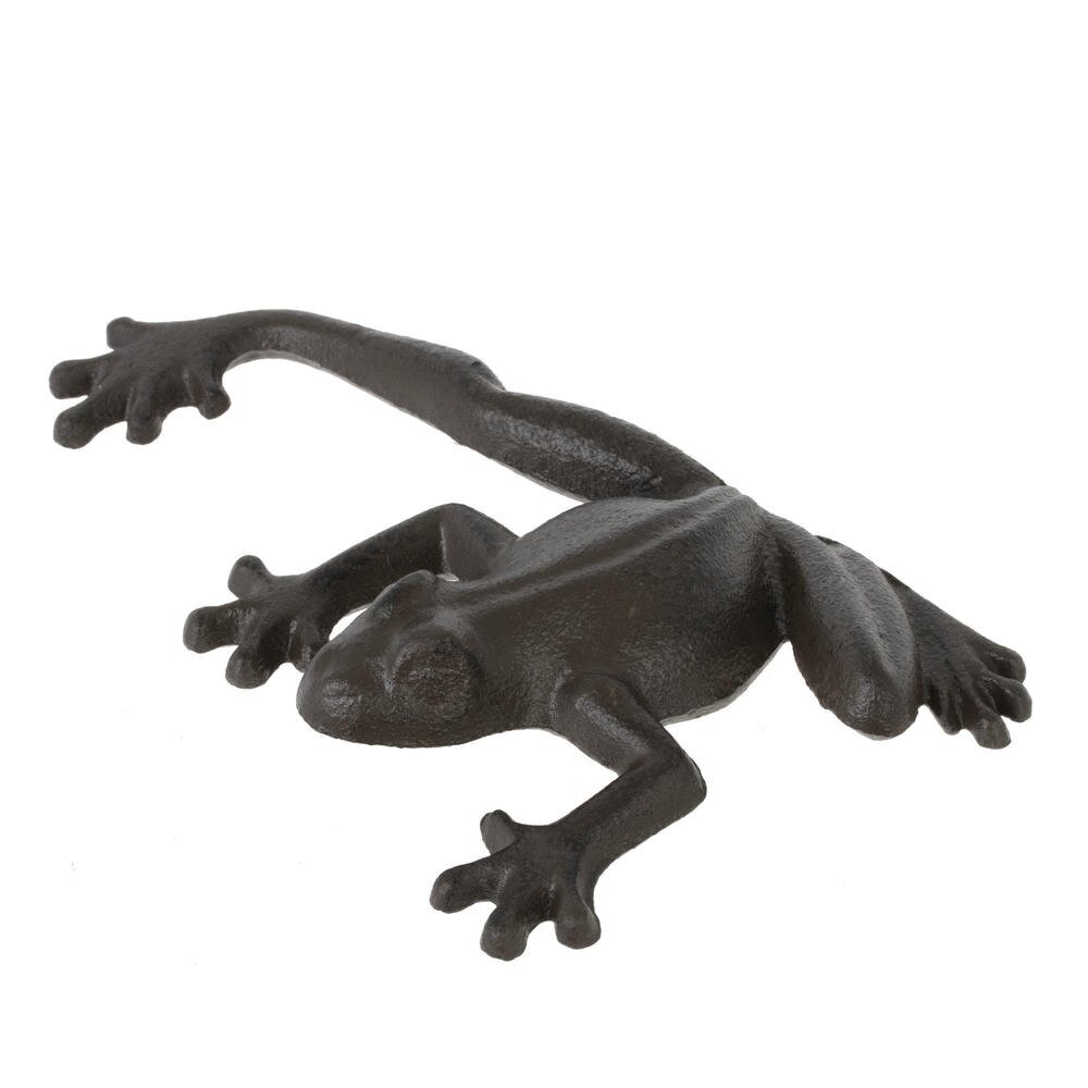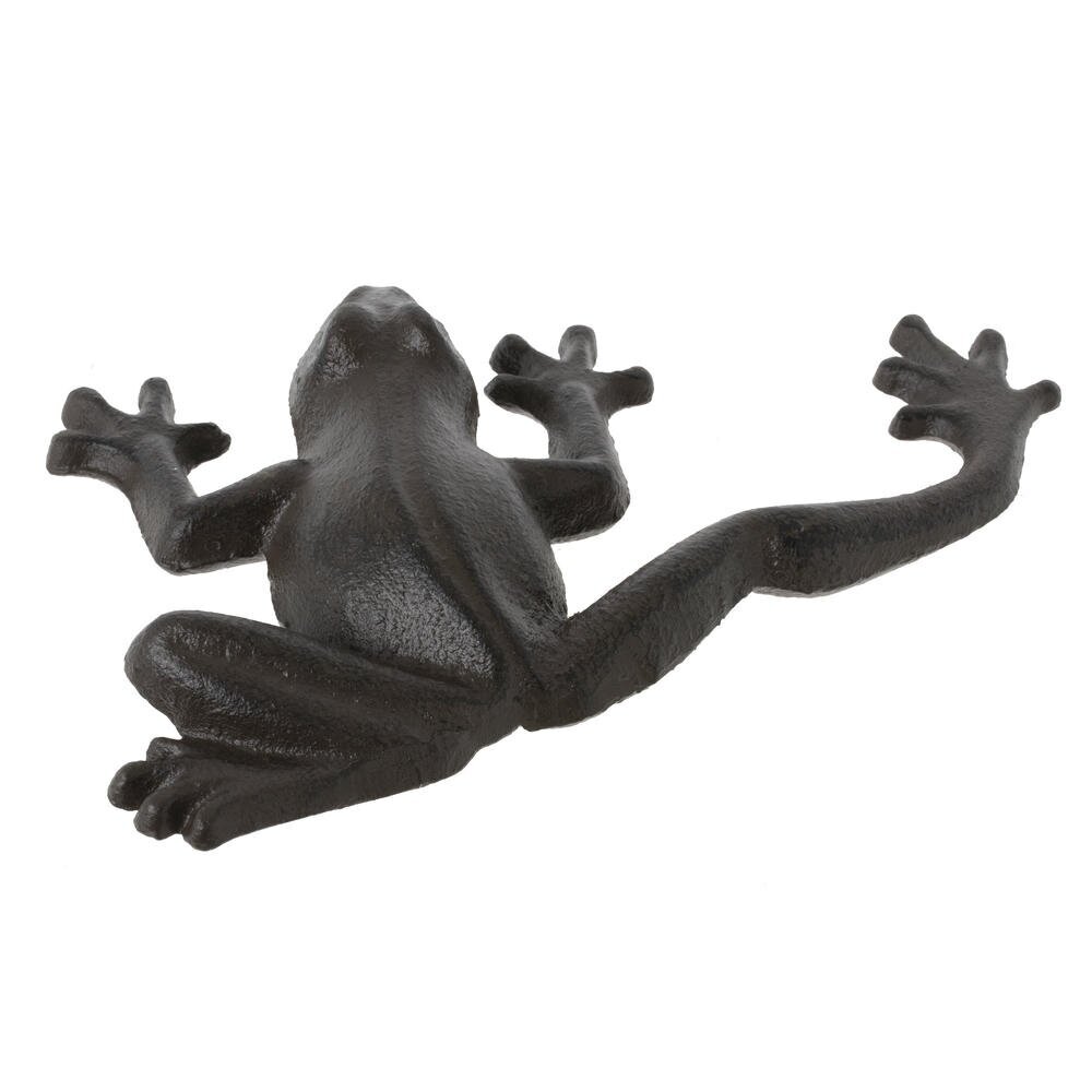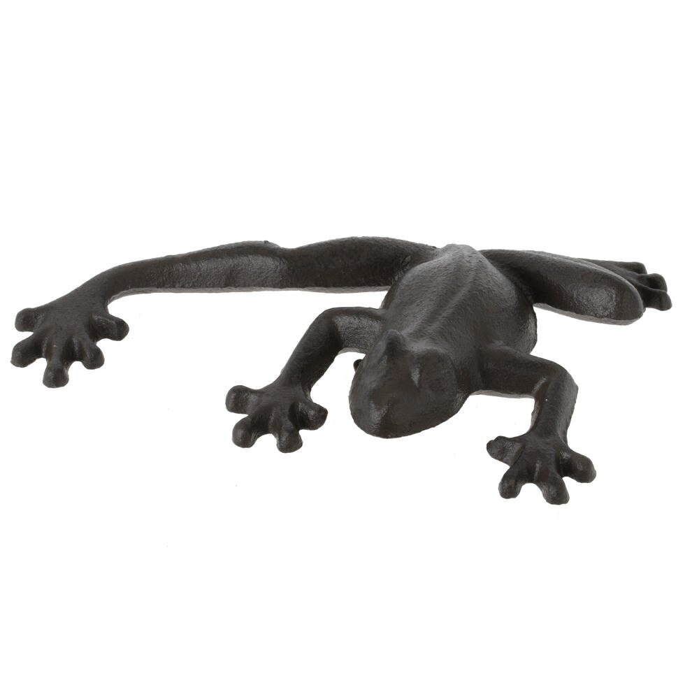 Декоративная фигурка «Лягушка» из металла станет стильным акцентом в интерьере дома или на даче. Фигура выполнена в виде реалистичной лягушки, распластавшей лапки, будто карабкающейся по стене или сидящей на камне. Плотный металлический корпус придаёт изделию устойчивость и долговечность, не боится влаги и перепадов температур, поэтому подходит как для помещения, так и для сада, террасы или балкона. Темное покрытие с легкой фактурой гармонично сочетается с деревом, камнем и коваными элементами. Такая фигурка станет оригинальным декоративным акцентом на полке, подоконнике, возле входной двери или в цветочной композиции, а также послужит необычным подарком любителям природы и оригинального декора. Фигурку можно подвешивать на стену на специальную петельку.