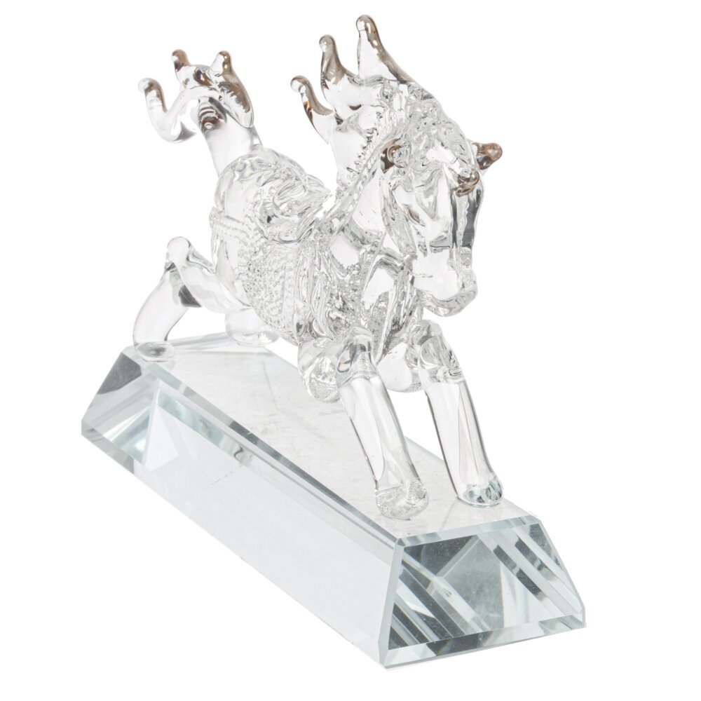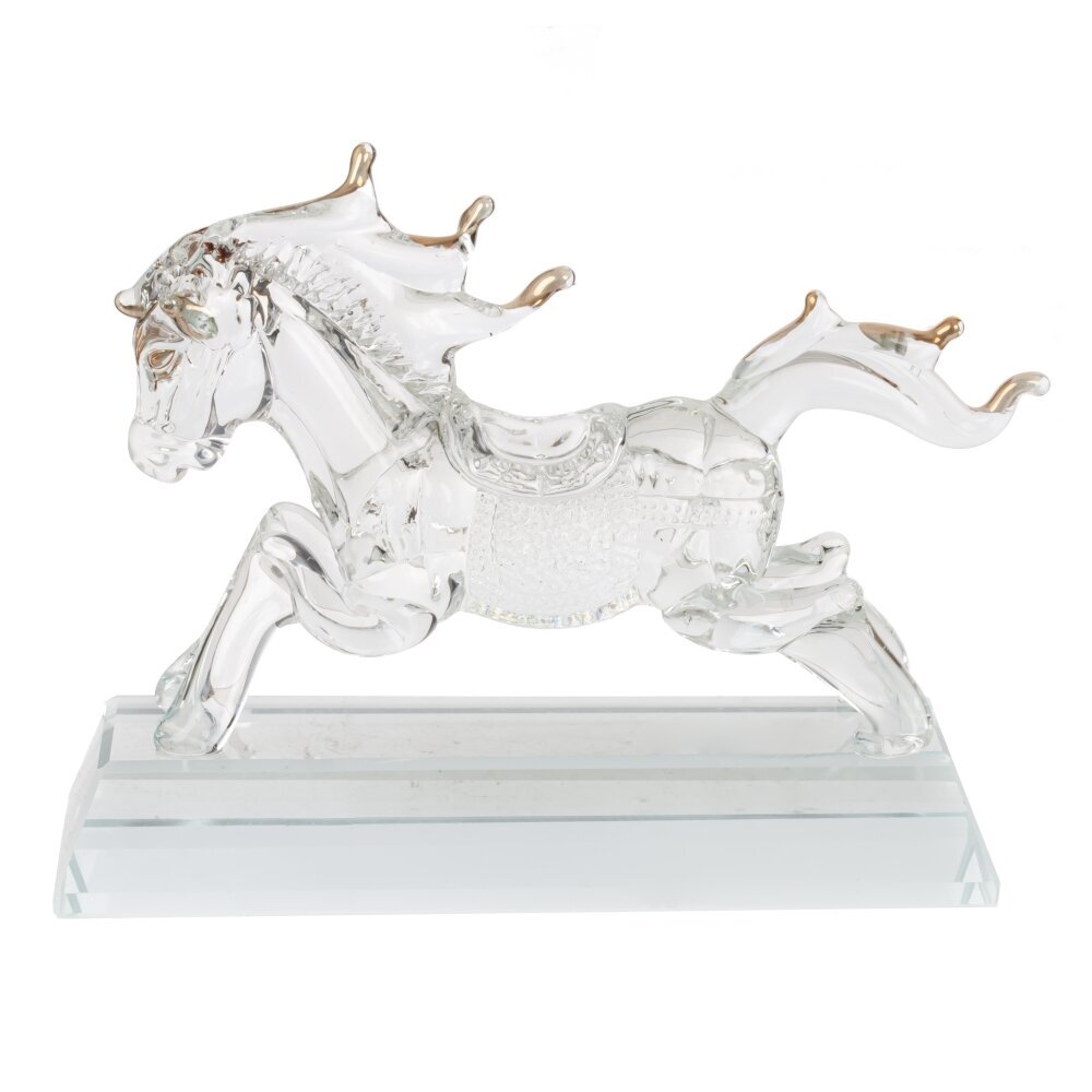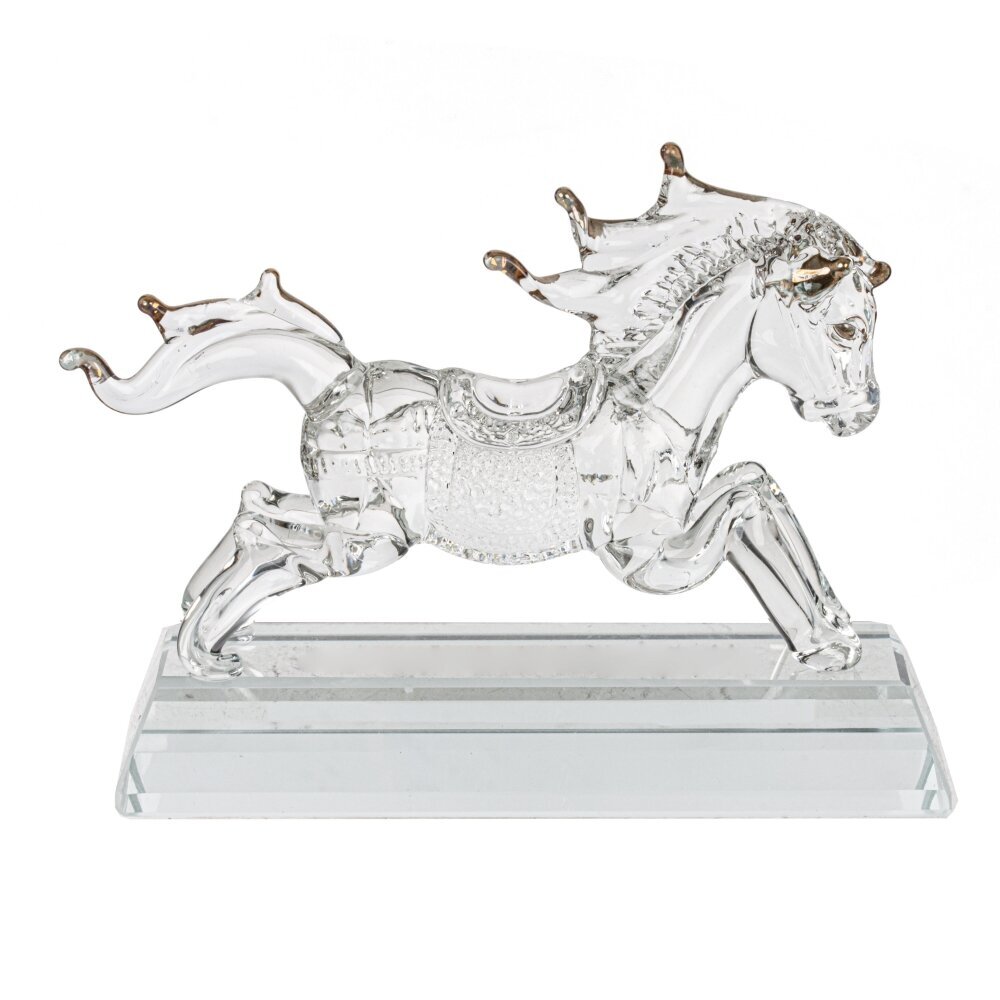 Декоративная фигурка "Лошадь" из прозрачного стекла — это изысканное произведение искусства, воплощающее грацию и силу. Лошадь изображена в динамичной бегущей позе. Тело лошади переливается на свету, создавая ощущение магии и волшебства, словно она оживает под лучами солнца. Грива и хвост, выполненные в технике стеклянных волн, кажутся живыми и развивающимися на ветру. Этот аксессуар идеально подойдет для украшения интерьера, будь то полка, стол или витрина, принося нотку волшебства и элегантности в любое пространство. Идеальный подарок для любителей лошадей или поклонников стильного декора.
