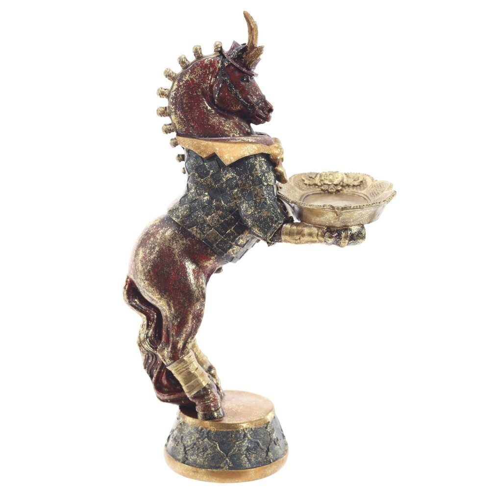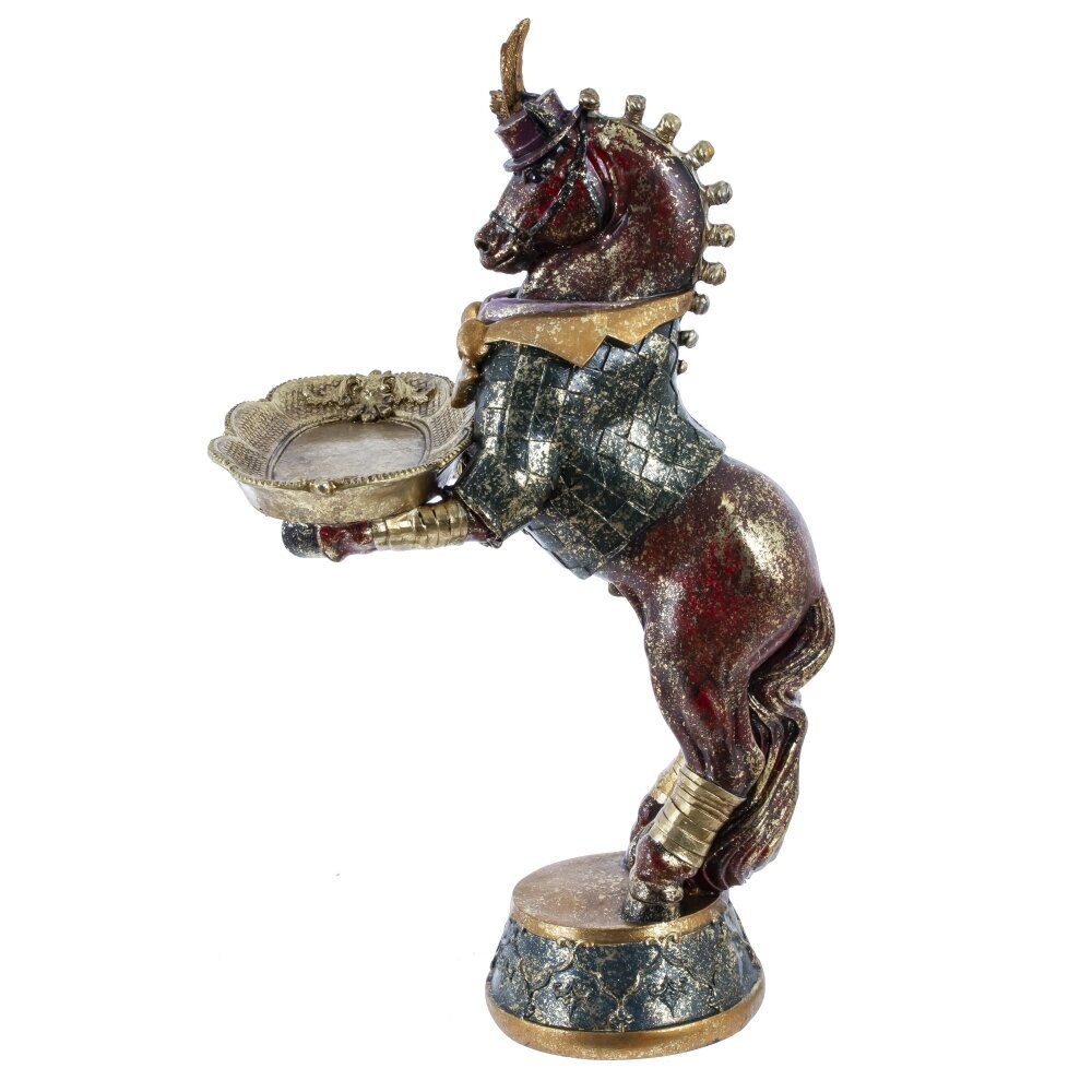 Декоративна фигурка "Лошадь" с подставкой для мелочей — это изящный и стильный аксессуар, который украсит любой интерьер и добавит ему нотку благородства. Выполненный в благородном цвете, он отличается утончённым дизайном и гармоничными линиями, олицетворяющими грацию и силу этого благородного животного. Лошадь — символ энергии, стремления вперёд и удачи, а потому такой элемент декора может стать не только украшением, но и талисманом для дома. Оно украсит полку, камин, праздничный стол или станет оригинальным подарком. Его можно использовать как самостоятельный элемент декора или в сочетании с другими аксессуарами в едином стиле. Это сочетание красоты и символизма будет радовать глаз каждый день.