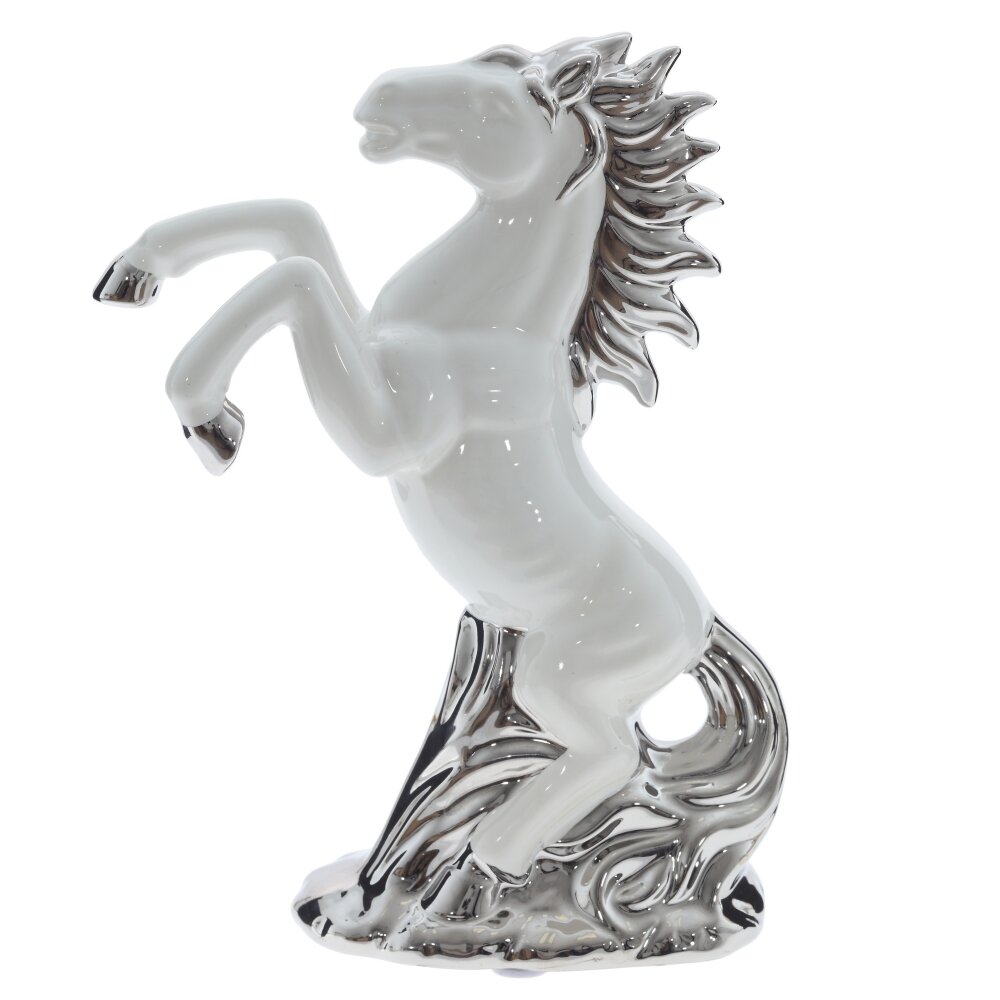 Декоративная фигурка "Лошадь" — элегантная статуэтка из керамики в белом глянцевом цвете с серебряной гривой и хвостом, воплощающая символ 2026 года! В динамичной позе курбета лошадь словно парит в воздухе полная грации и силы. Это не просто украшение — идеальный подарок для любителей лошадей, коллекционеров или близких, символизирующий удачу, энергию и новые начала. Упакована в надежную картонную коробку с пузырчатой пленкой для безопасной доставки. Пусть эта лошадка вдохновляет вас на великие свершения в году Лошади!