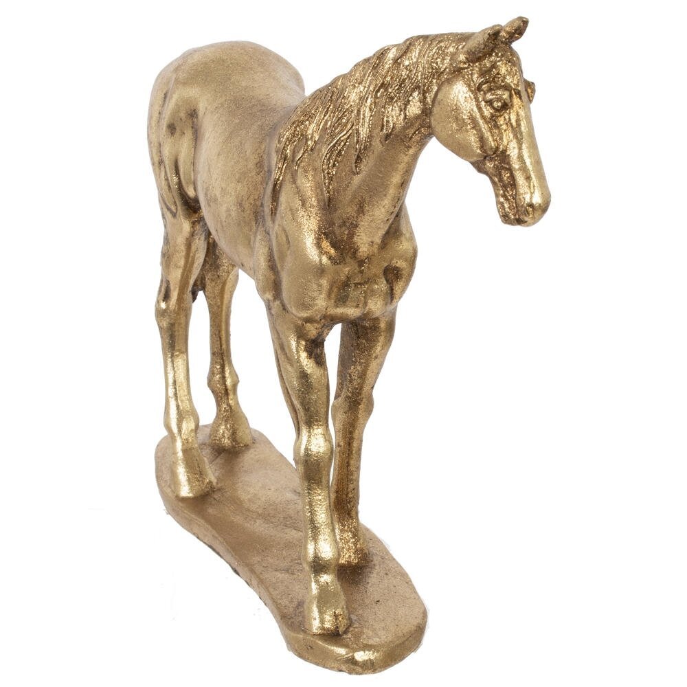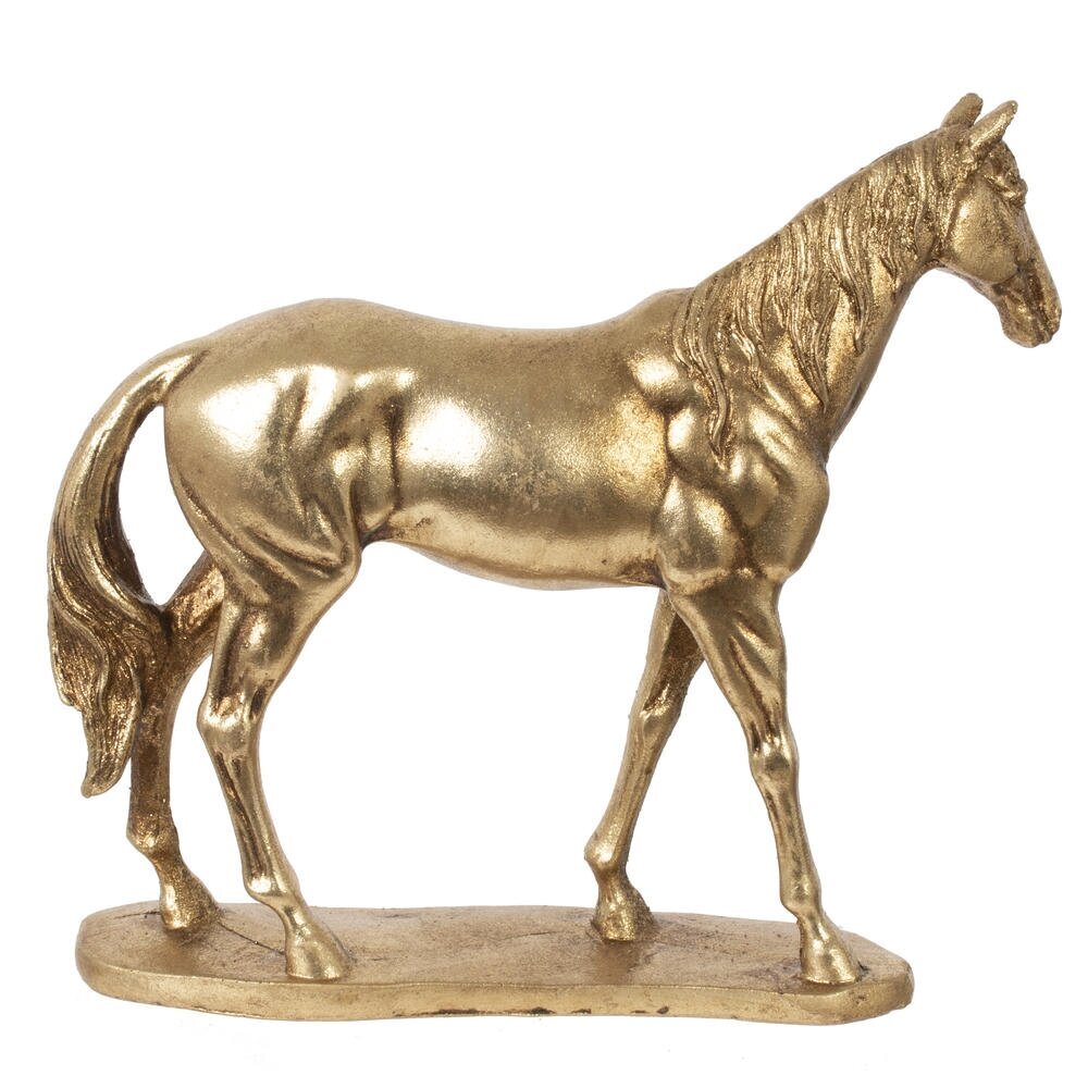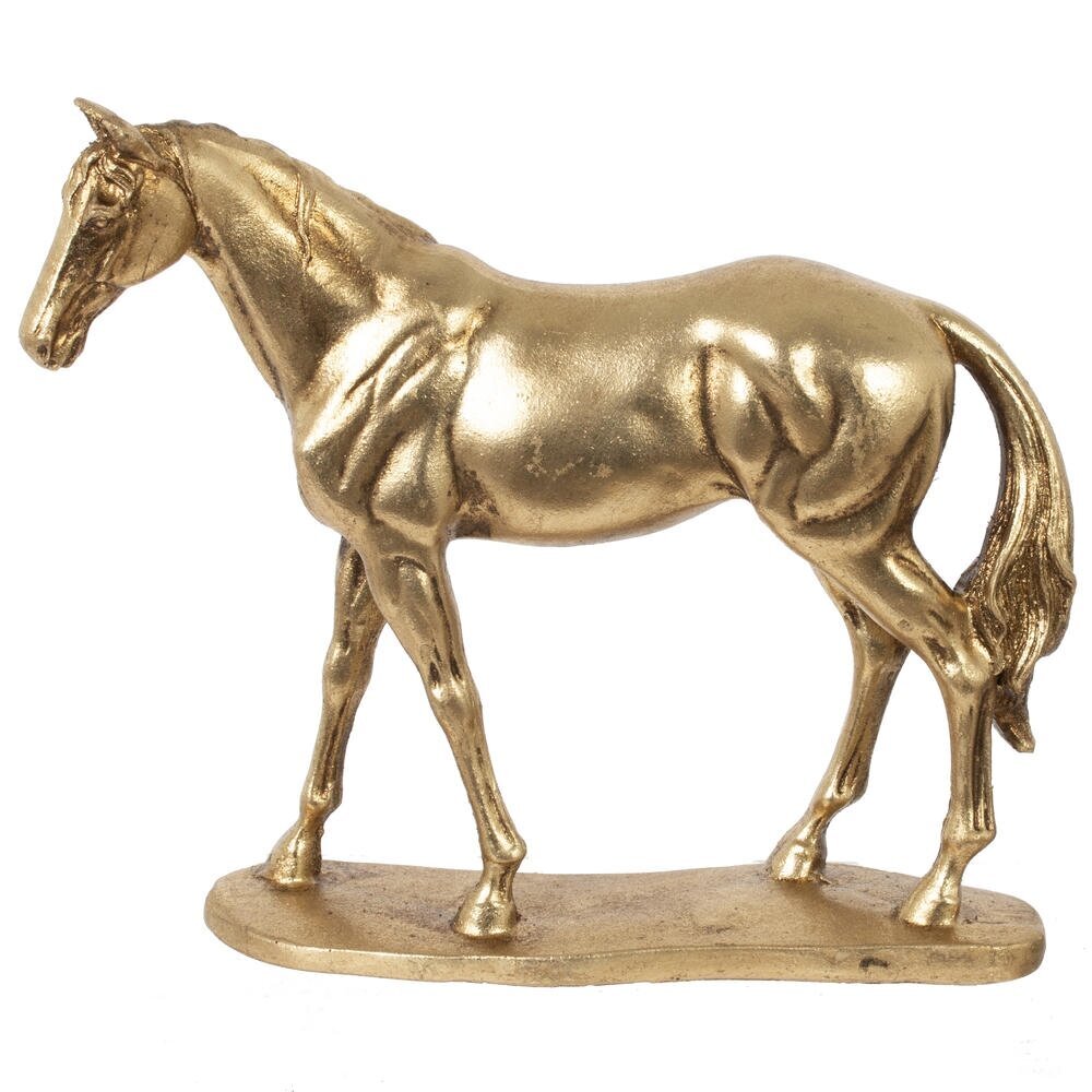 Декоративная фигурка лошади — это утончённый элемент интерьера, сочетающий в себе изящество форм и символику силы, грации и свободы. Выполненная из прочных полимерных материалов, фигурка окрашена в золотой цвет. Такая фигурка станет отличным дополнением к интерьеру в классическом или современном стиле, подчеркнёт вкус владельца и добавит нотку утончённости в любое пространство. Идеальна как самостоятельный декоративный акцент на полке, камине или в витрине, а также как подарок, символизирующий стремление вперёд, успех и внутреннюю силу. Благодаря высокому качеству исполнения и гармоничному сочетанию цветов, эта фигурка будет долго радовать глаз и вдохновлять.