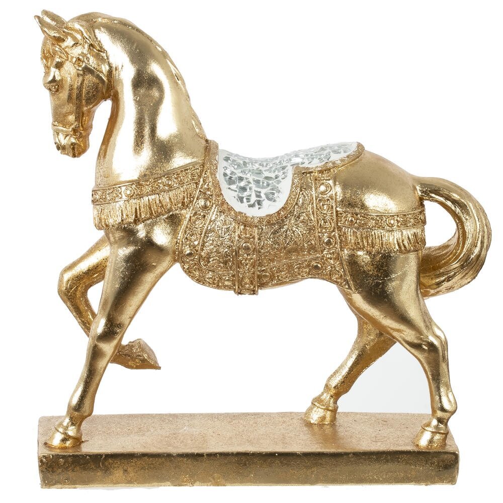 Ощутите изящную мощь и бессмертие времени с декоративной фигуркой "Лошадь" на подставке — элегантным символом 2026 года для дома или офиса! Изготовленная из прочного полистоуна в благородном золотом цвете, эта стильная лошадка предстает в изящной позе, с попоной, украшенной замысловатыми узорами. Лошадь традиционно олицетворяет силу, процветание, удачу и грацию, делая её идеальным талисманом для привлечения успеха в делах и гармонии. Прекрасный новогодний подарок для близких или изысканное дополнение к интерьеру — она добавит шарм и вдохновение в любое пространство. Упакована в картонную коробку с пенопластом для безопасной транспортировки.