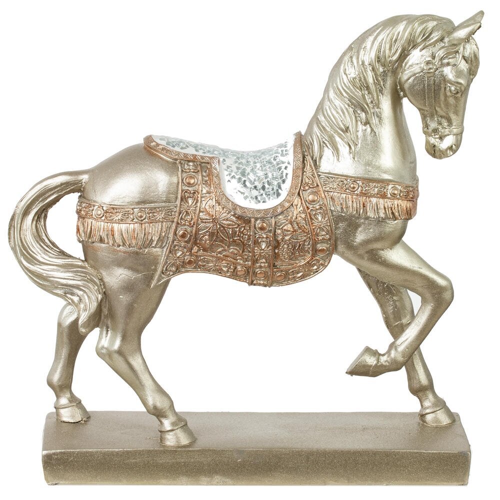 Ощутите изящную мощь и бессмертие времени с декоративной фигуркой "Лошадь" на подставке — элегантным символом 2026 года для дома или офиса! Изготовленная из прочного полистоуна в благородном светло-золотом цвете, эта стильная лошадка предстает в изящной позе, с попоной, украшенной замысловатыми узорами. Лошадь традиционно олицетворяет силу, процветание, удачу и грацию, делая её идеальным талисманом для привлечения успеха в делах и гармонии. Прекрасный новогодний подарок для близких или изысканное дополнение к интерьеру — она добавит шарм и вдохновение в любое пространство. Упакована в картонную коробку с пенопластом для безопасной транспортировки.