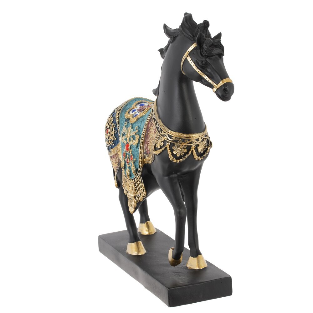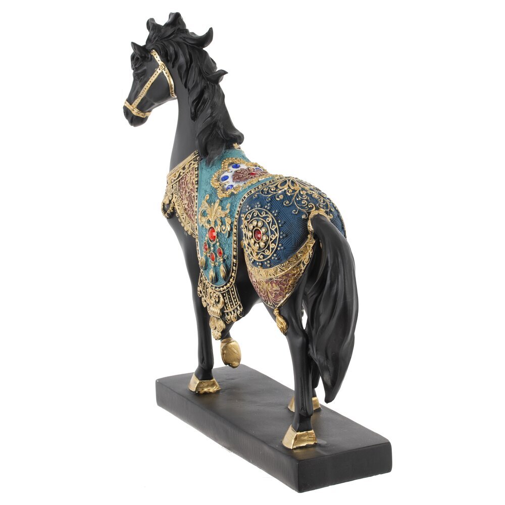 Декоративная фигурка лошади — это утончённый элемент интерьера, сочетающий в себе изящество форм и символику силы, грации и свободы. Выполненная из прочных полимерных материалов, фигурка окрашена в черный цвет и изысканно украшена декоративными элементами, придающими ей особый шарм. Особое внимание привлекает детально проработанная развевающаяся грива, создающая ощущение движения и живости образа. Такая фигурка станет отличным дополнением к интерьеру в классическом или современном стиле, подчеркнёт вкус владельца и добавит нотку утончённости в любое пространство. Идеальна как самостоятельный декоративный акцент на полке, камине или в витрине, а также как подарок, символизирующий стремление вперёд, успех и внутреннюю силу. Благодаря высокому качеству исполнения и гармоничному сочетанию цветов, эта фигурка будет долго радовать глаз и вдохновлять.