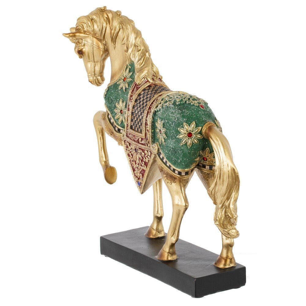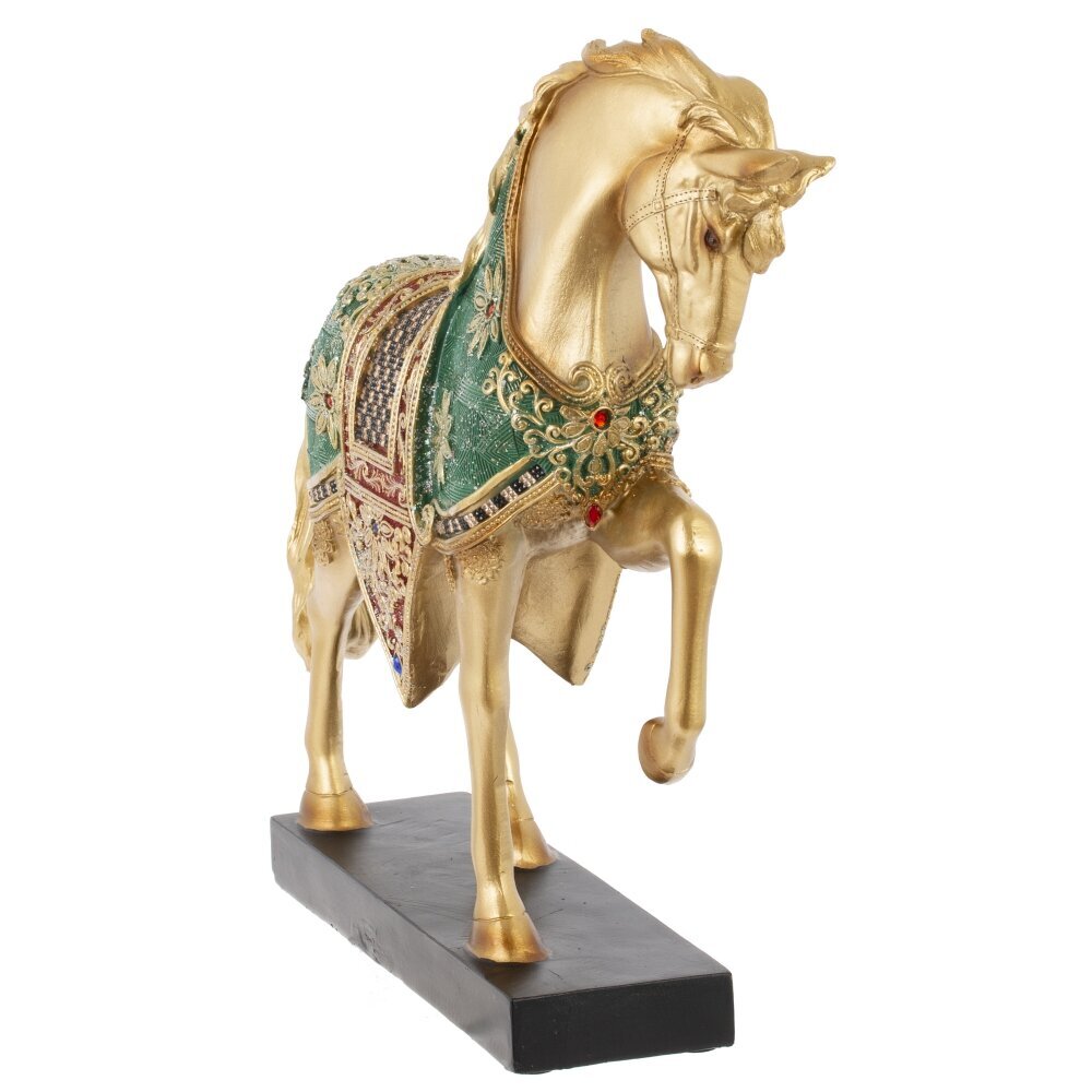 Декоративная фигурка лошади — это утончённый элемент интерьера, сочетающий в себе изящество форм и символику силы, грации и свободы. Выполненная из прочных полимерных материалов, фигурка окрашена в золотой цвет и изысканно украшена декоративными элементами, придающими ей особый шарм. Особое внимание привлекает детально проработанная развевающаяся грива, создающая ощущение движения и живости образа. Такая фигурка станет отличным дополнением к интерьеру в классическом или современном стиле, подчеркнёт вкус владельца и добавит нотку утончённости в любое пространство. Идеальна как самостоятельный декоративный акцент на полке, камине или в витрине, а также как подарок, символизирующий стремление вперёд, успех и внутреннюю силу. Благодаря высокому качеству исполнения и гармоничному сочетанию цветов, эта фигурка будет долго радовать глаз и вдохновлять.