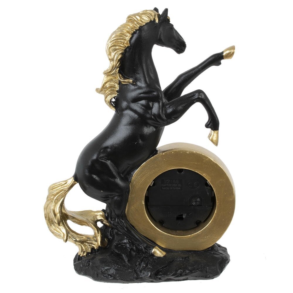 Ощутите ритм времени и неукротимую энергию с декоративной фигуркой "Лошадь" с часами — изысканным символом 2026 года, предназначенным для дома или офиса! Выполненная из прочного полистоуна в черно-золотом цвете, эта стильная лошадка в динамичной позе олицетворяет силу, процветание и удачу в делах. Идеальна в качестве оригинальныого новогоднего подарка или как дополнение к интерьеру, она добавит шарм любому пространству. Наполните свой день магией — эта фигурка подарит гармонию и вдохновение на целый год!