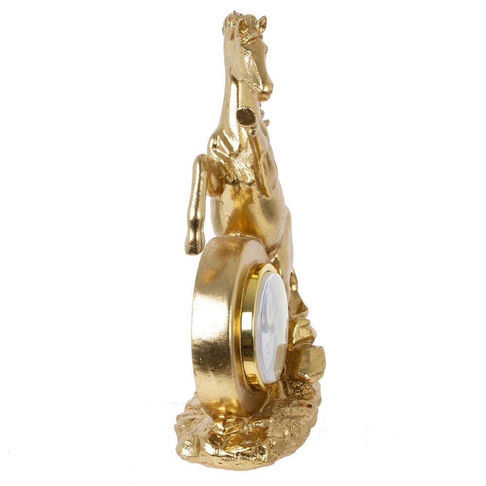 Ощутите ритм времени и неукротимую энергию с декоративной фигуркой "Лошадь" с часами — изысканным символом 2026 года, предназначенным для дома или офиса! Выполненная из прочного полистоуна в золотом цвете, эта стильная лошадка в динамичной позе олицетворяет силу, процветание и удачу в делах. Идеальна в качестве оригинальныого новогоднего подарка или как дополнение к интерьеру, она добавит шарм любому пространству. Наполните свой день магией — эта фигурка подарит гармонию и вдохновение на целый год!