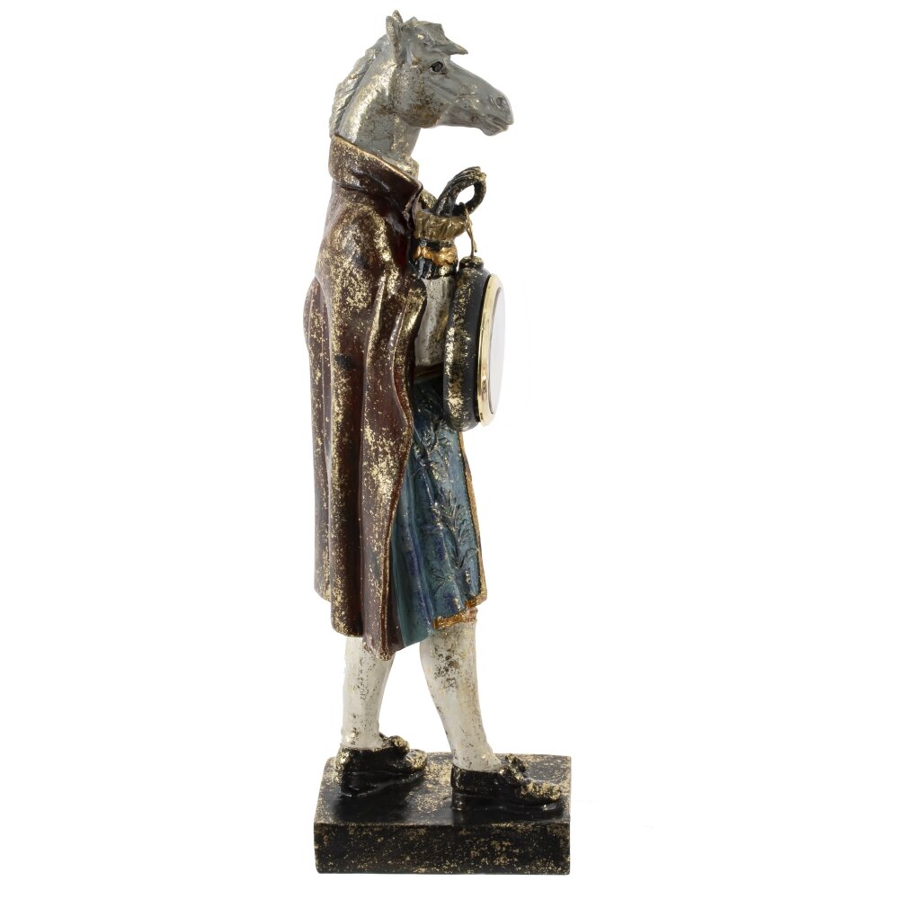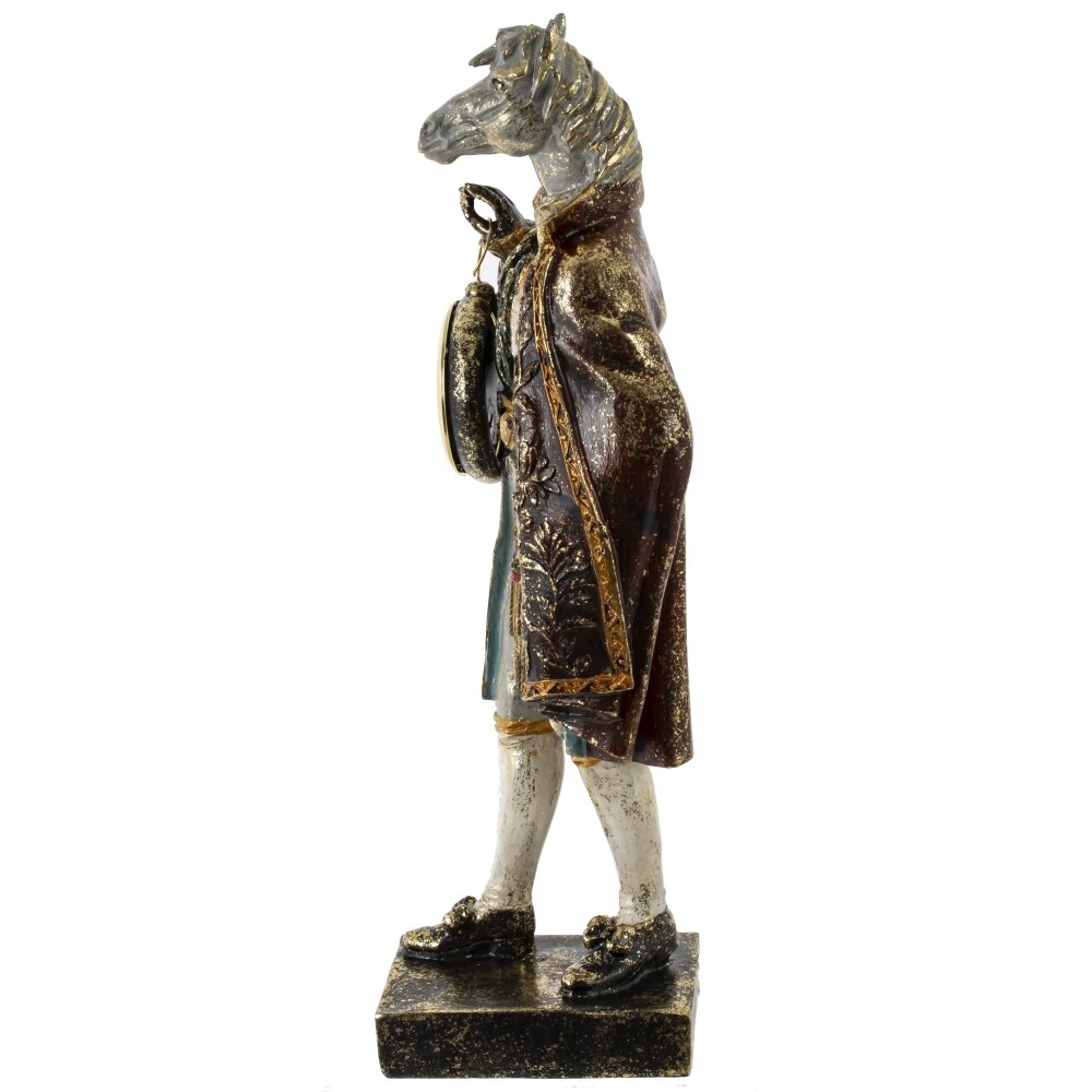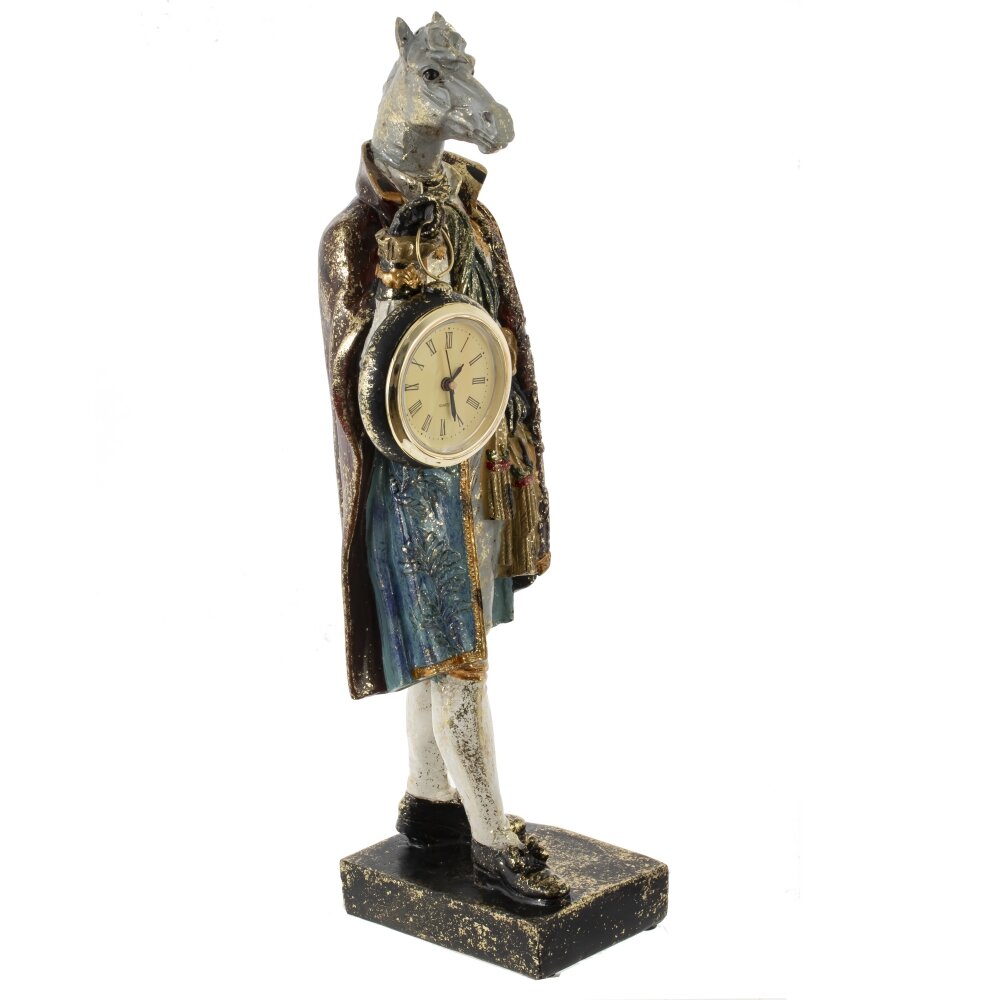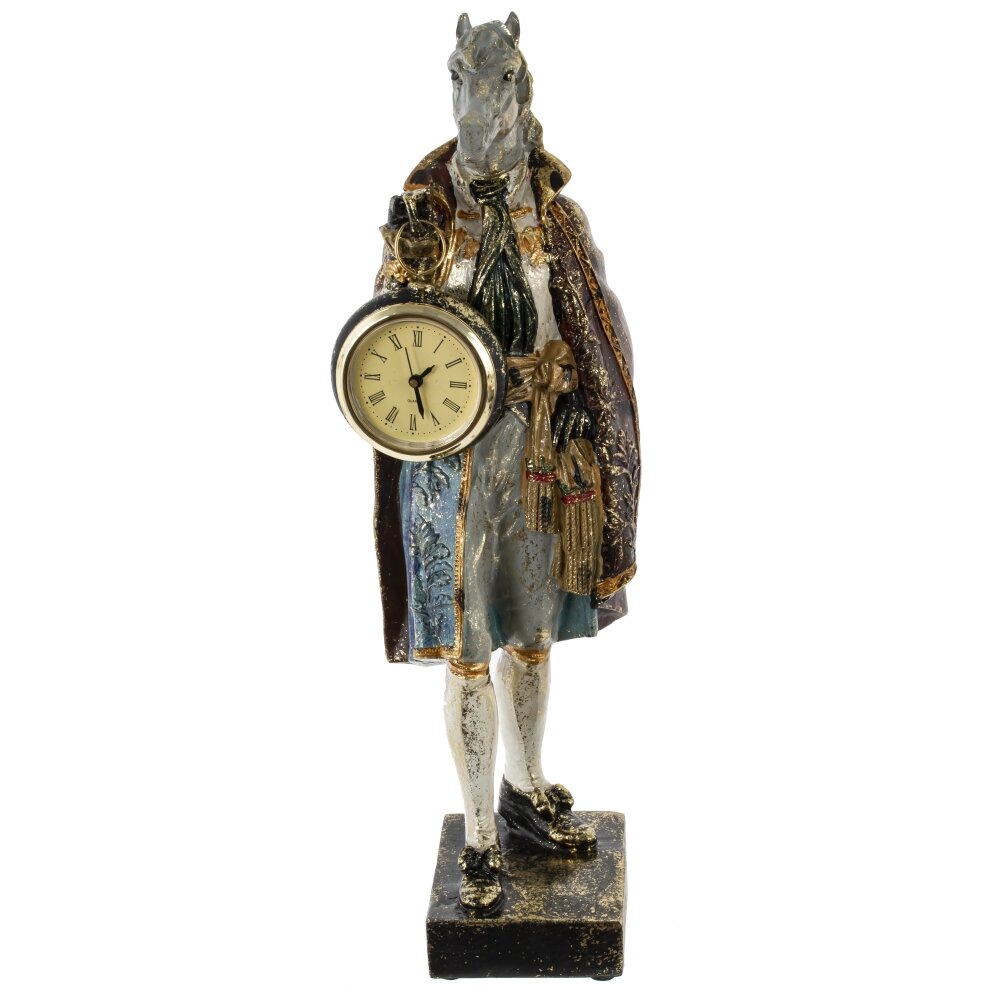 Декоративная фигурка лошади в изысканной дворцовой одежде с встроенными часами — это стильный и необычный элемент декора, который мгновенно привлекает внимание и придаёт интерьеру нотки элегантности и роскоши. Выполненная из качественных материалов, фигурка отличается тщательной проработкой деталей: богатая отделка, изящные узоры и выразительный дизайн создают атмосферу дворцового великолепия. Часы, гармонично вписанные в композицию, делают изделие не только украшением, но и функциональным аксессуаром. Такая фигурка станет оригинальным акцентом в гостиной, кабинете или спальне, а также прекрасным подарком для ценителей эксклюзива и утончённого стиля.