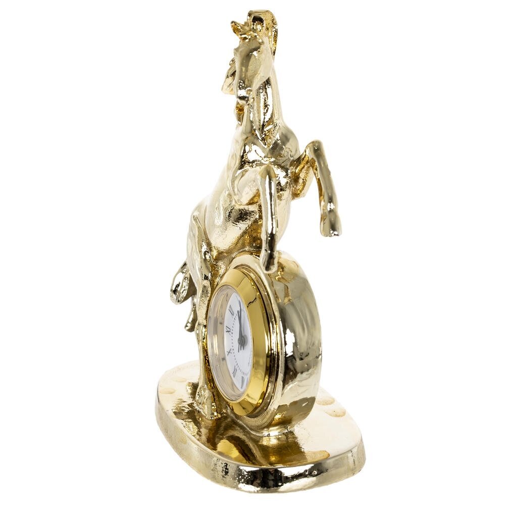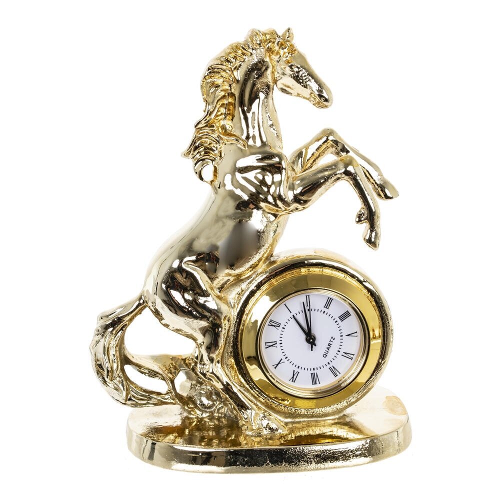 Ощутите ритм времени и неукротимую энергию с декоративной фигуркой "Лошадь" с часами — изысканным символом 2026 года, предназначенным для дома или офиса! Выполненная из прочного полистоуна в золотом металлике, эта стильная лошадка в динамичной позе олицетворяет силу, процветание и удачу в делах. Идеальна в качестве оригинальныого новогоднего подарка или как дополнение к интерьеру, она добавит шарм любому пространству. Наполните свой день магией — эта фигурка подарит гармонию и вдохновение на целый год!