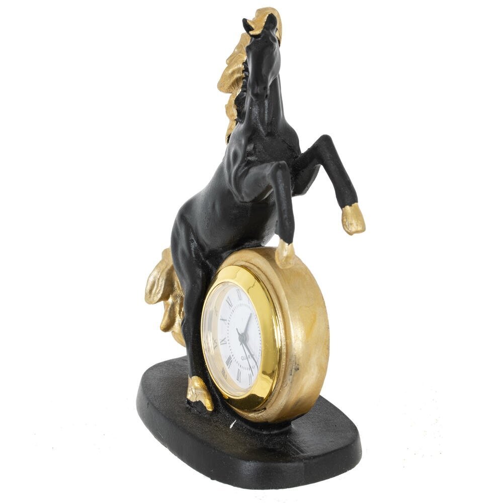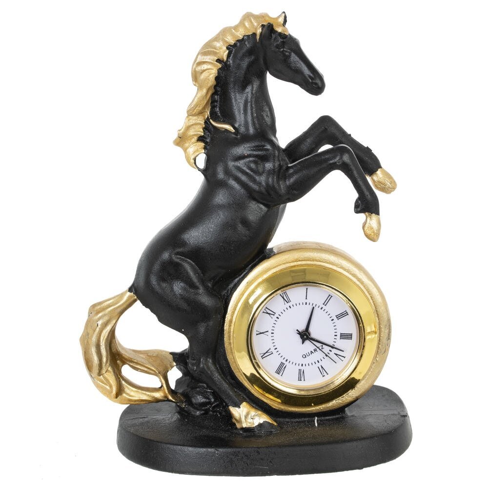 Ощутите ритм времени и неукротимую энергию с декоративной фигуркой "Лошадь" с часами — изысканным символом 2026 года, предназначенным для дома или офиса! Выполненная из прочного полистоуна в черно-золотом цвете, эта стильная лошадка в динамичной позе олицетворяет силу, процветание и удачу в делах. Идеальна в качестве оригинальныого новогоднего подарка или как дополнение к интерьеру, она добавит шарм любому пространству. Наполните свой день магией — эта фигурка подарит гармонию и вдохновение на целый год!