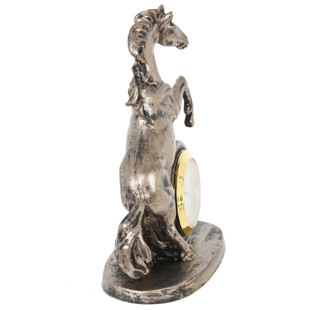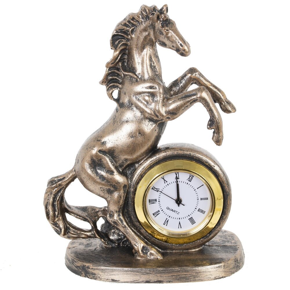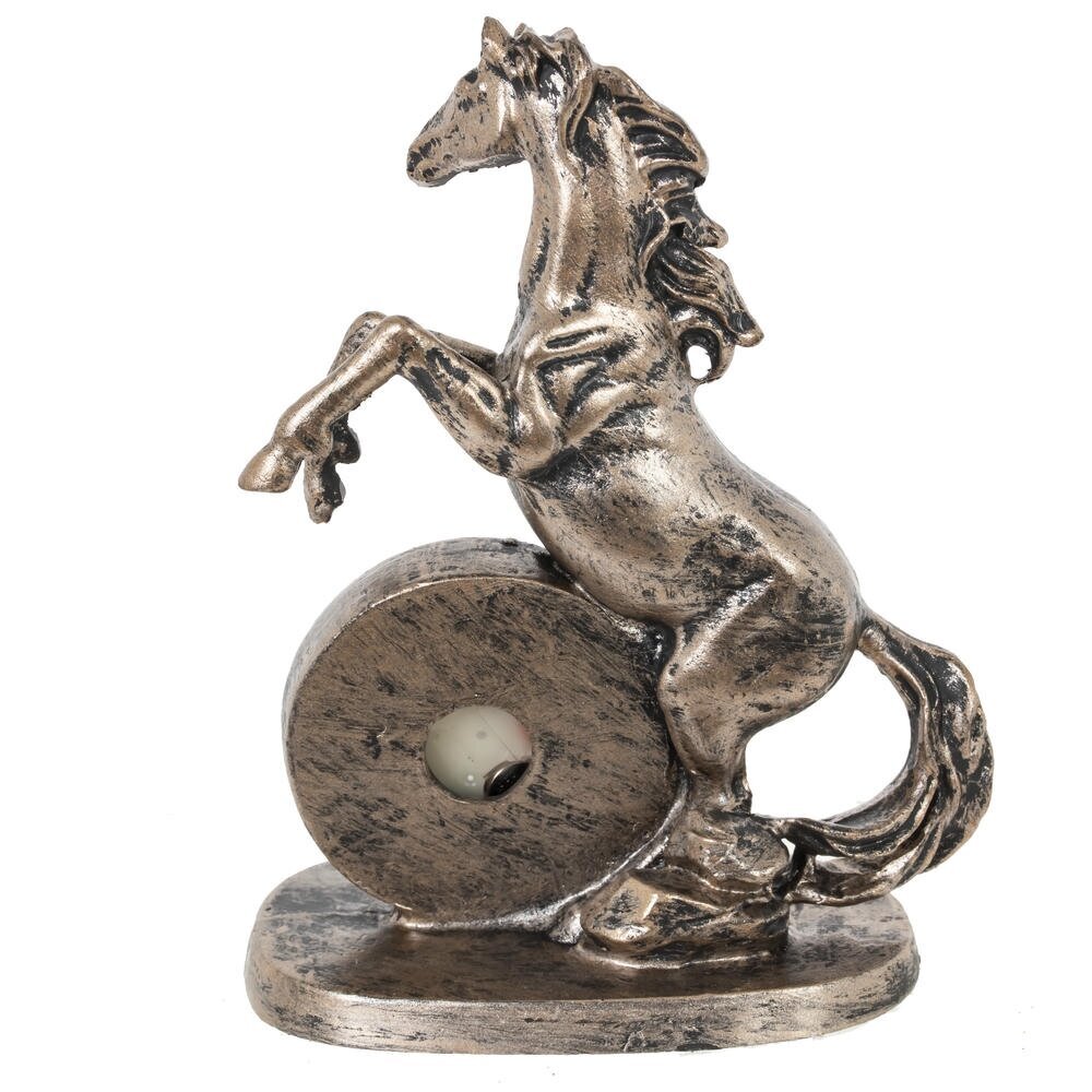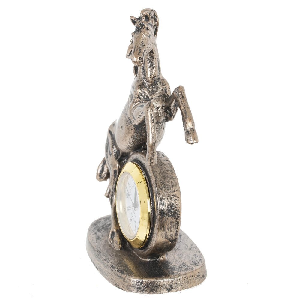 Ощутите ритм времени и неукротимую энергию с декоративной фигуркой "Лошадь" с часами — изысканным символом 2026 года, предназначенным для дома или офиса! Выполненная из прочного полистоуна в бронзовом цвете, эта стильная лошадка в динамичной позе олицетворяет силу, процветание и удачу в делах. Идеальна в качестве оригинальныого новогоднего подарка или как дополнение к интерьеру, она добавит шарм любому пространству. Наполните свой день магией — эта фигурка подарит гармонию и вдохновение на целый год!