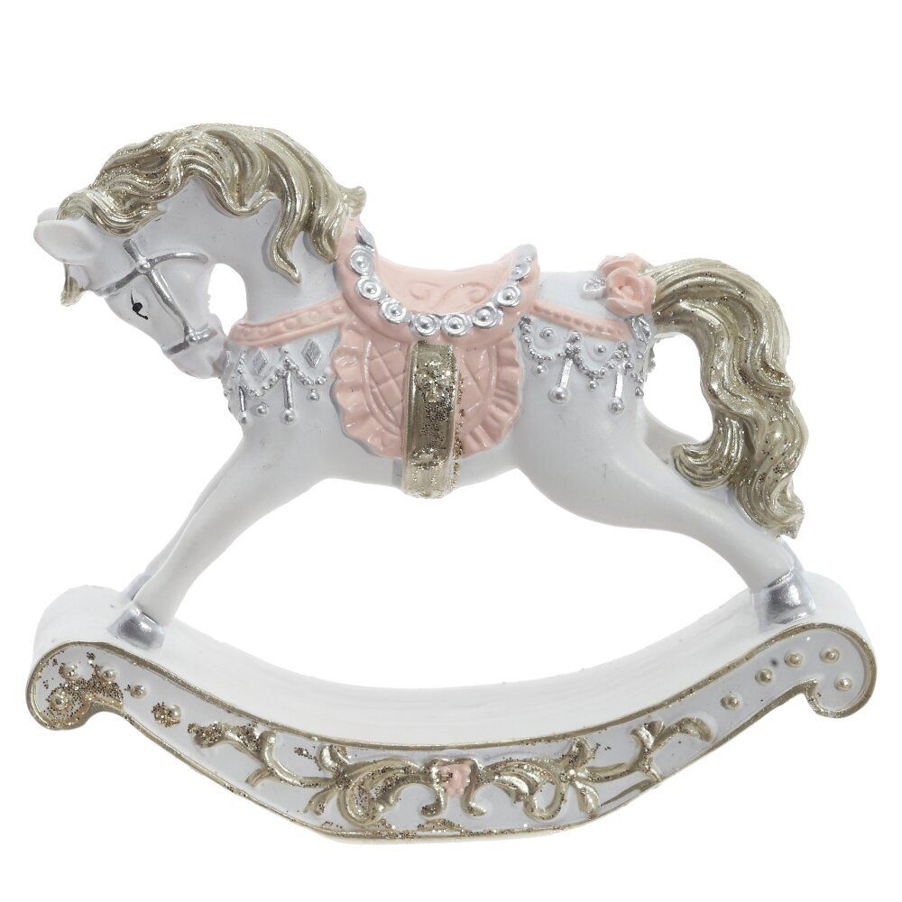 Декоративная фигурка "Лошадка" — это изысканный элемент интерьера в стиле ретро. Она выполнена из полистоуна и представляет собой классическую лошадку-качалку с изящными деталями. Белый цвет, украшения на седле и золотистая отделка придают этому предмету очарование и элегантность. Эта лошадка станет замечательным акцентом в любом уголке вашего дома, добавляя ностальгический уют и придавая атмосферу детства.