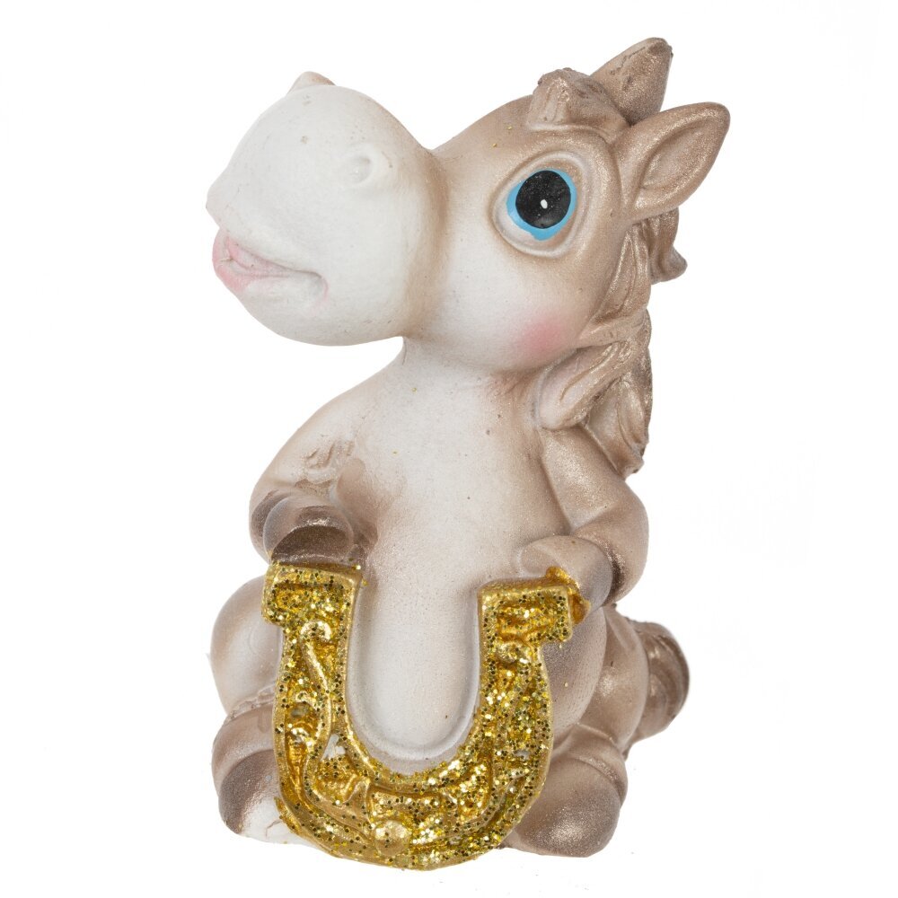 Декоративная фигурка "Лошадка с подковой" — стильный и символичный элемент декора, который станет прекрасным подарком к Новому году или талисманом на удачу. Выполненная из прочного полимерного материала, фигурка символизирует энергию, силу и процветание. Лошадка с подковой традиционно ассоциируется с удачей и успехом в делах. Идеально подойдёт для оформления интерьера дома или офиса, а также станет оригинальным дополнением к новогодней композиции. Этот стильный сувенир будет радовать вас и ваших близких весь год. Фигурка представлена в 4-х видах.