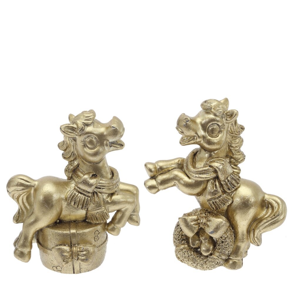 Декоративная фигурка "Лошадка" — стильный и символичный элемент декора, который станет прекрасным подарком к Новому году или талисманом на удачу. Выполненная из прочного полимерного материала и окрашенная в изысканный золотой цвет, фигурка символизирует энергию, силу и процветание. Лошадка традиционно ассоциируется с удачей и успехом в делах. Идеально подойдёт для оформления интерьера дома или офиса, а также станет оригинальным дополнением к новогодней композиции. Этот стильный сувенир будет радовать вас и ваших близких весь год. Фигурка представлена в двух видах.