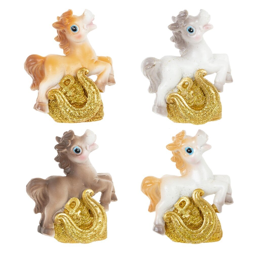 Декоративная фигурка "Лошадка с подковой" — стильный и символичный элемент декора, который станет прекрасным подарком к Новому году или талисманом на удачу. Выполненная из прочного полимерного материала, фигурка символизирует энергию, силу и процветание. Лошадка с подковой традиционно ассоциируется с удачей и успехом в делах. Идеально подойдёт для оформления интерьера дома или офиса, а также станет оригинальным дополнением к новогодней композиции. Этот стильный сувенир будет радовать вас и ваших близких весь год. Фигурка представлена в 6 видах.