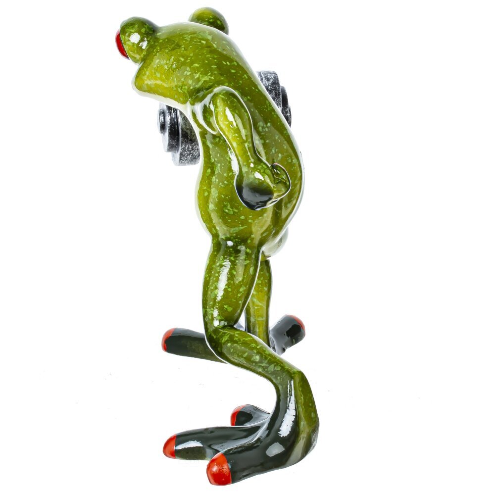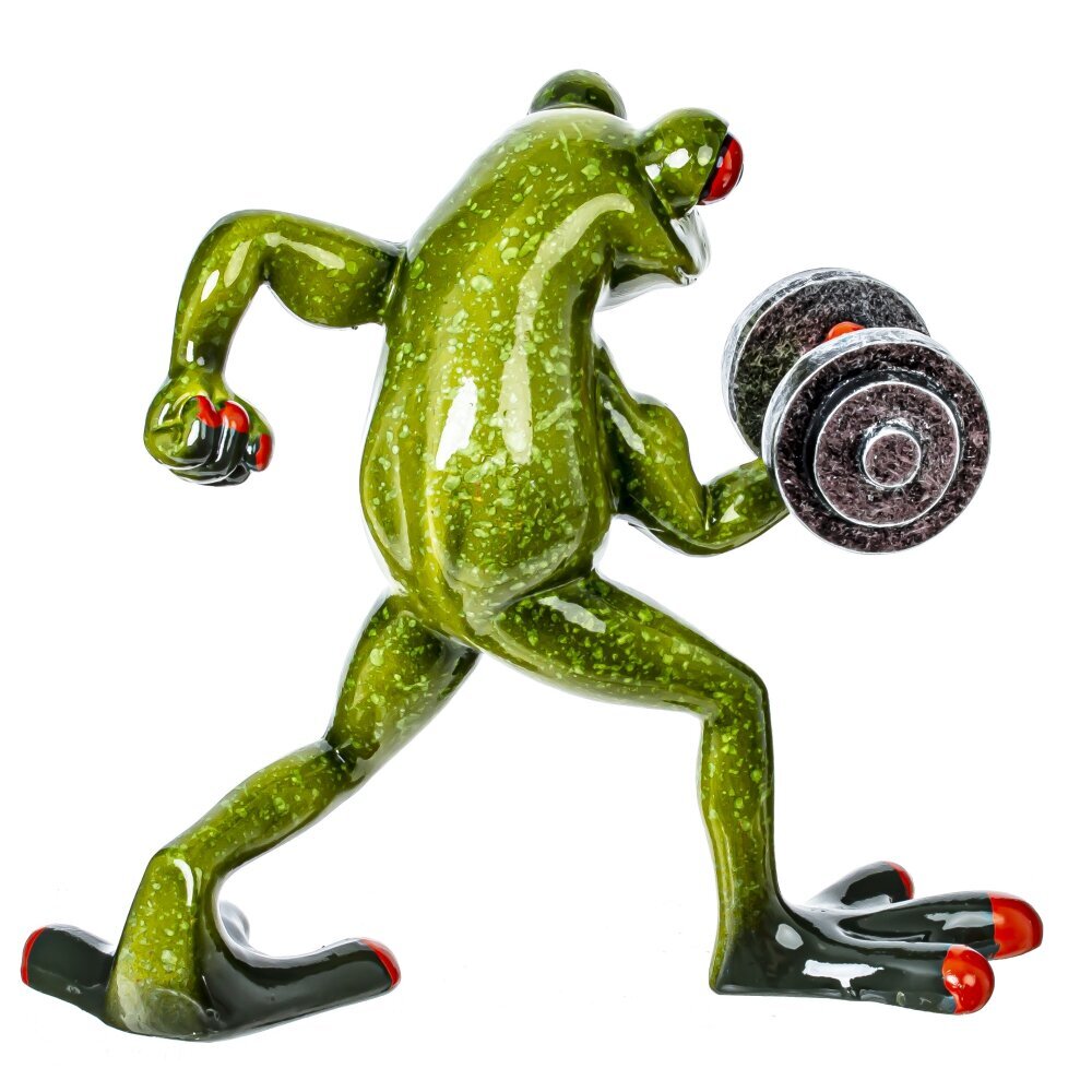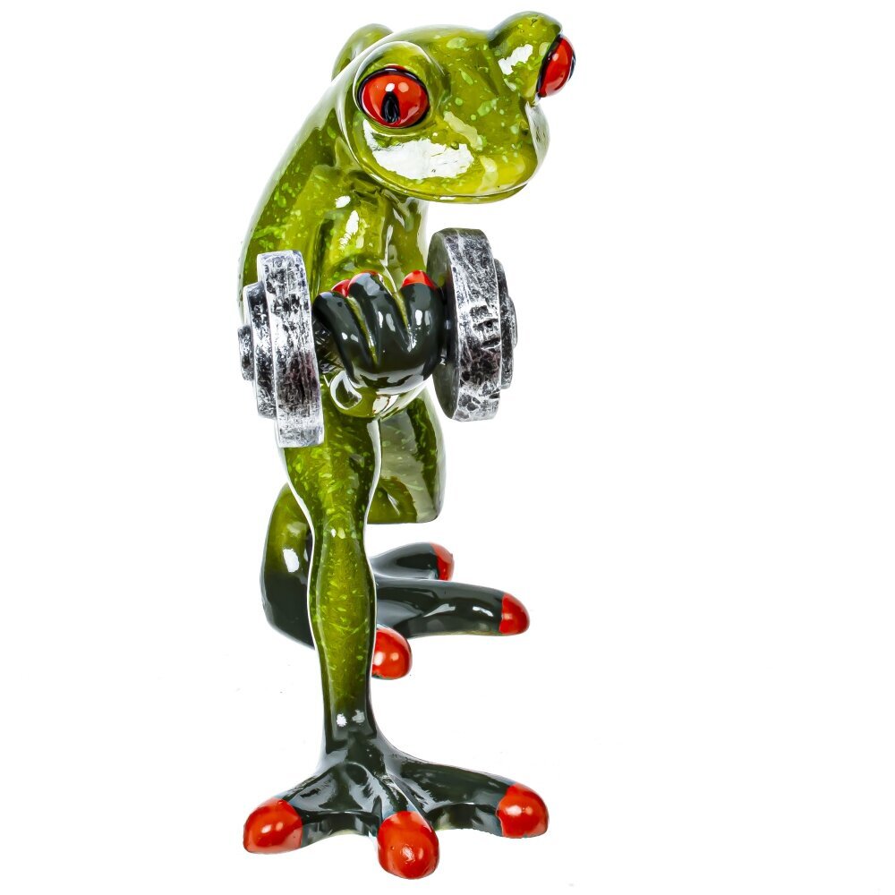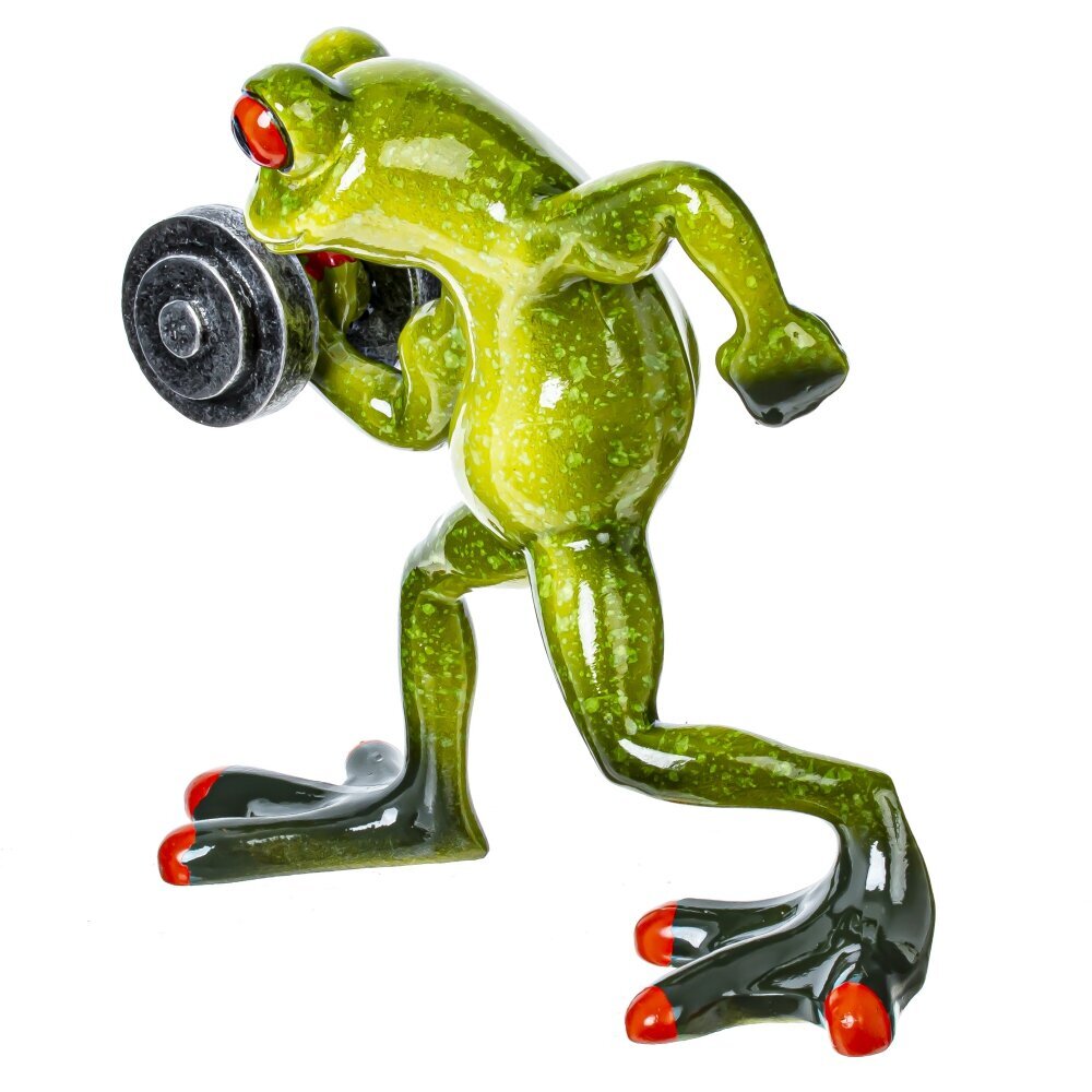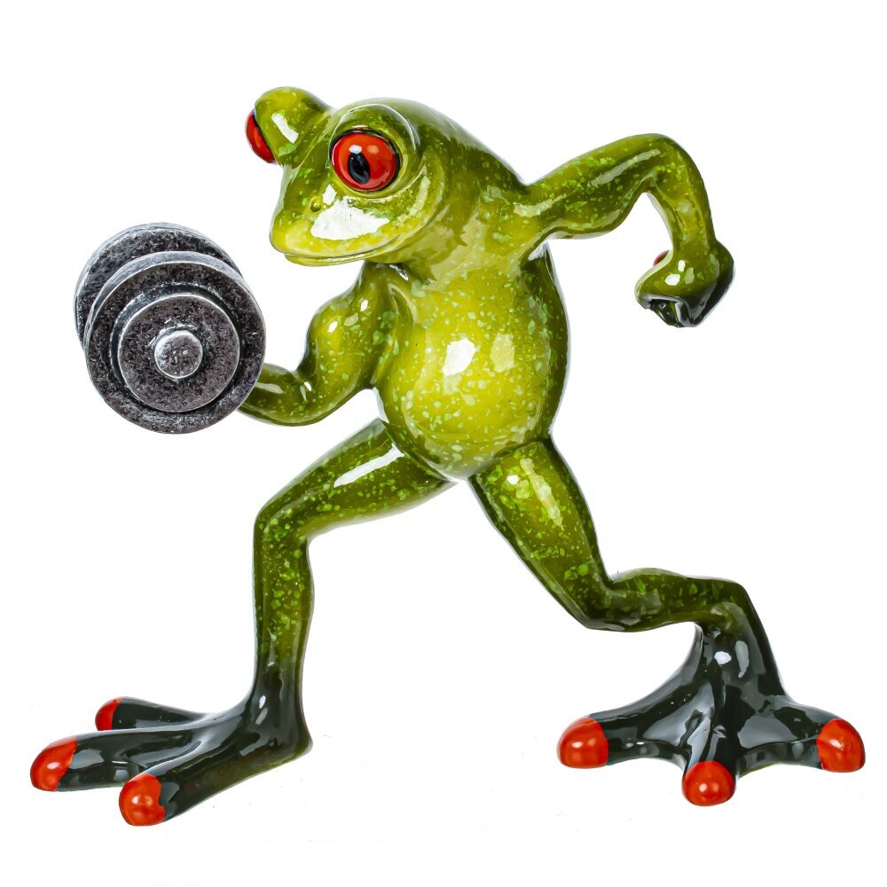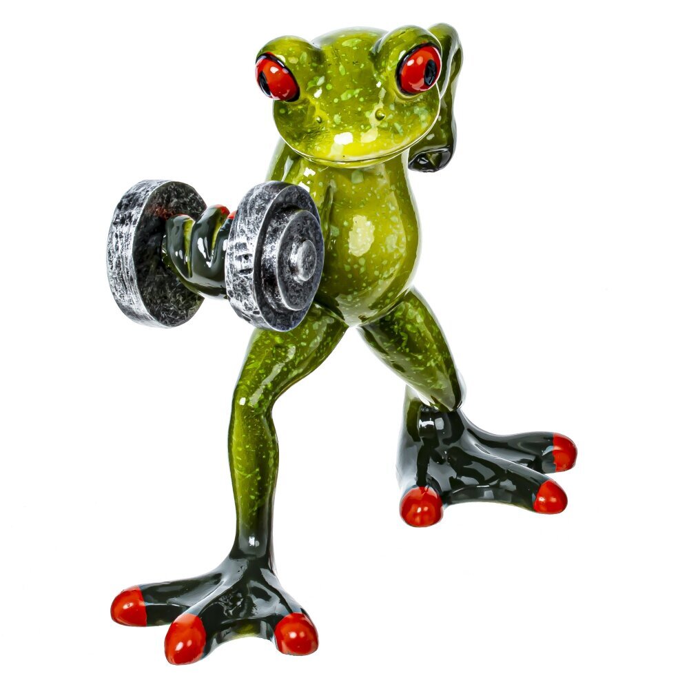 Фигурка декоративная "Лягушка" – это очаровательный и забавный элемент декора, который способен добавить изюминку в любой интерьер. Эта лягушка - спортсмен изображена с гантелей в лапке, что придаёт ей динамичность и игривость, как будто она готова выйти на состязание. Строгая и в то же время комичная поза лягушки приносит в дом лёгкость и поднимает настроение, а её яркие оттенки зелёного добавляют свежести в обстановку. Подобные фигурки идеально подходят как для оформления жилых помещений, так и для офисных пространств. Не забудьте также использовать эту лягушку в качестве необычного подарка для друзей и близких, которые любят оригинальные фигурки.