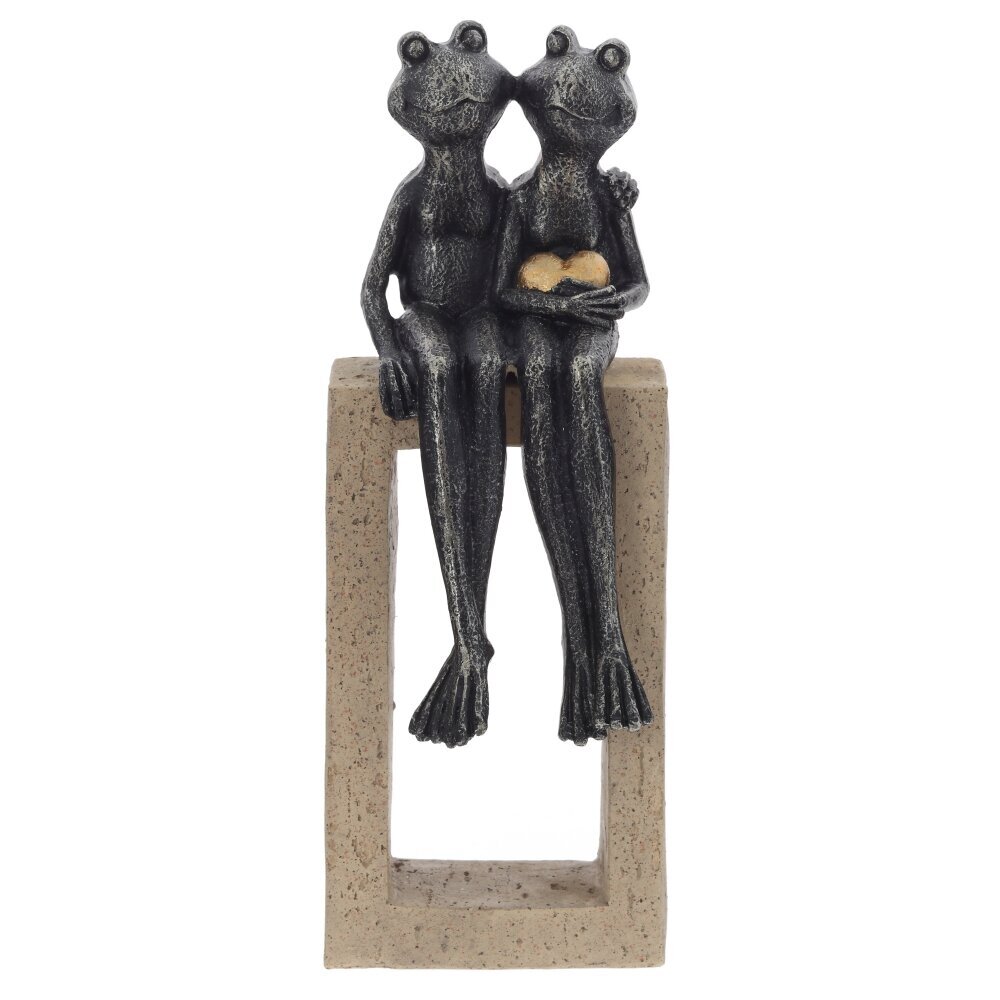 Декоративная фигурка «Лягушки» — трогательный акцент для интерьера и отличный символ любви и взаимной поддержки. Две забавные лягушечки сидят рядышком на строгой прямоугольной подставке, обнимаются и держат в лапках золотистое сердечко. Контраст темной фактуры фигурок и светлого «каменного» основания делает изделие стильным и запоминающимся. Выполнена из прочных полимерных материалов, устойчива к выцветанию и легко очищается от пыли. Подойдет для оформления гостиной, спальни, рабочего стола или в качестве романтичного подарка для близкого человека.
