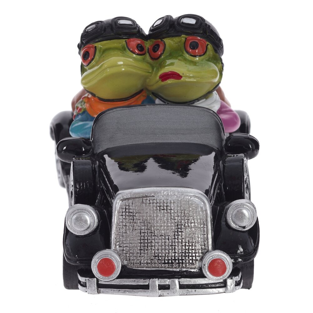Декоративная фигурка "Лягушки" изображает двух забавных лягушек, сидящих в черной машине. Они выглядят весело и беззаботно, будто отправляются в увлекательное путешествие или на приключение. Данная фигурка может стать замечательным элементом декора в доме или офисе, добавляя игривости и уникальности интерьеру. Реалистичные детали и оригинальный сюжет делают эту фигурку привлекательной для любителей необычных предметов. Поместив ее на полку или стол, вы создадите атмосферу веселья и позитива в вашем пространстве. Эта фигурка также может служить отличным подарком для ценителей юмора и оригинальных вещей.