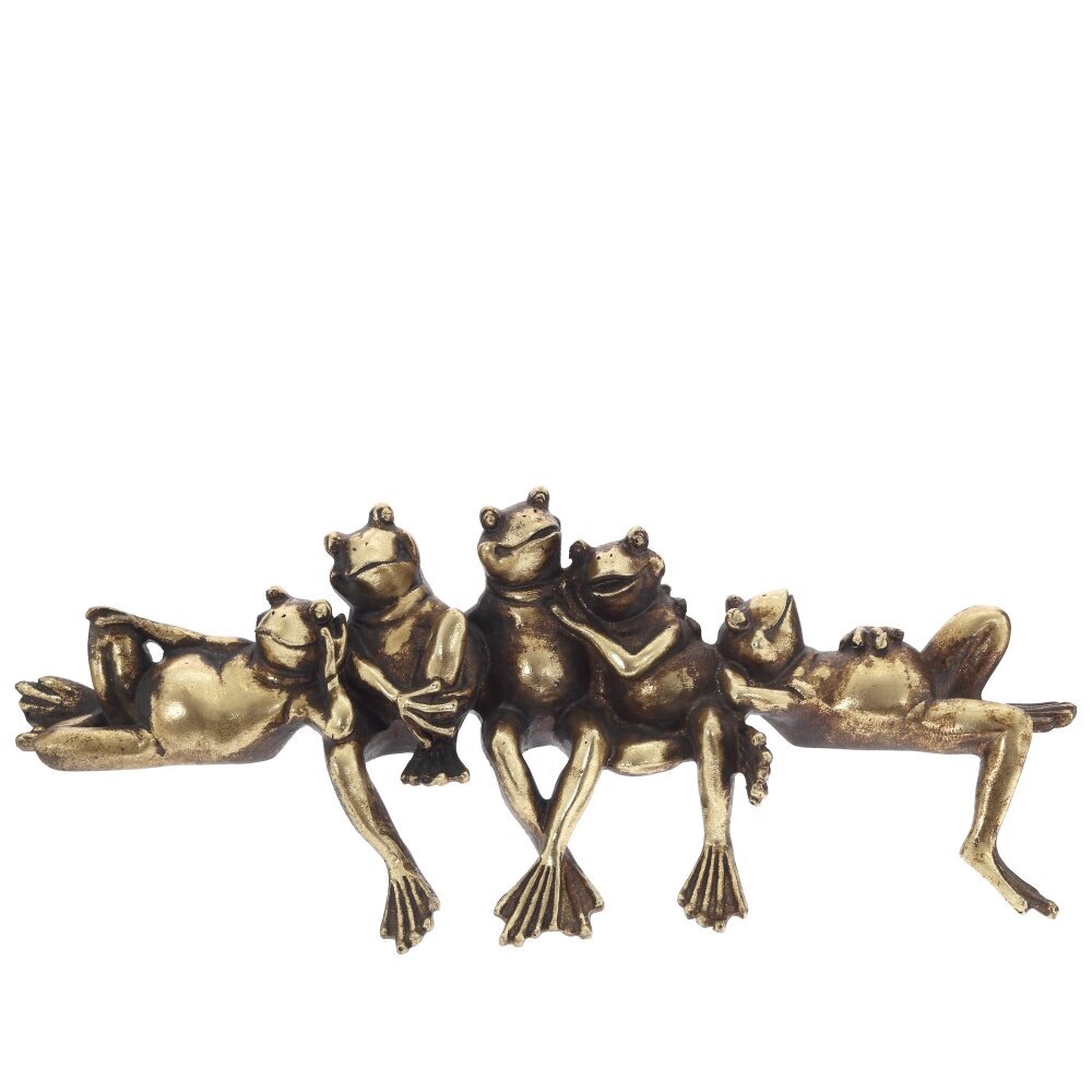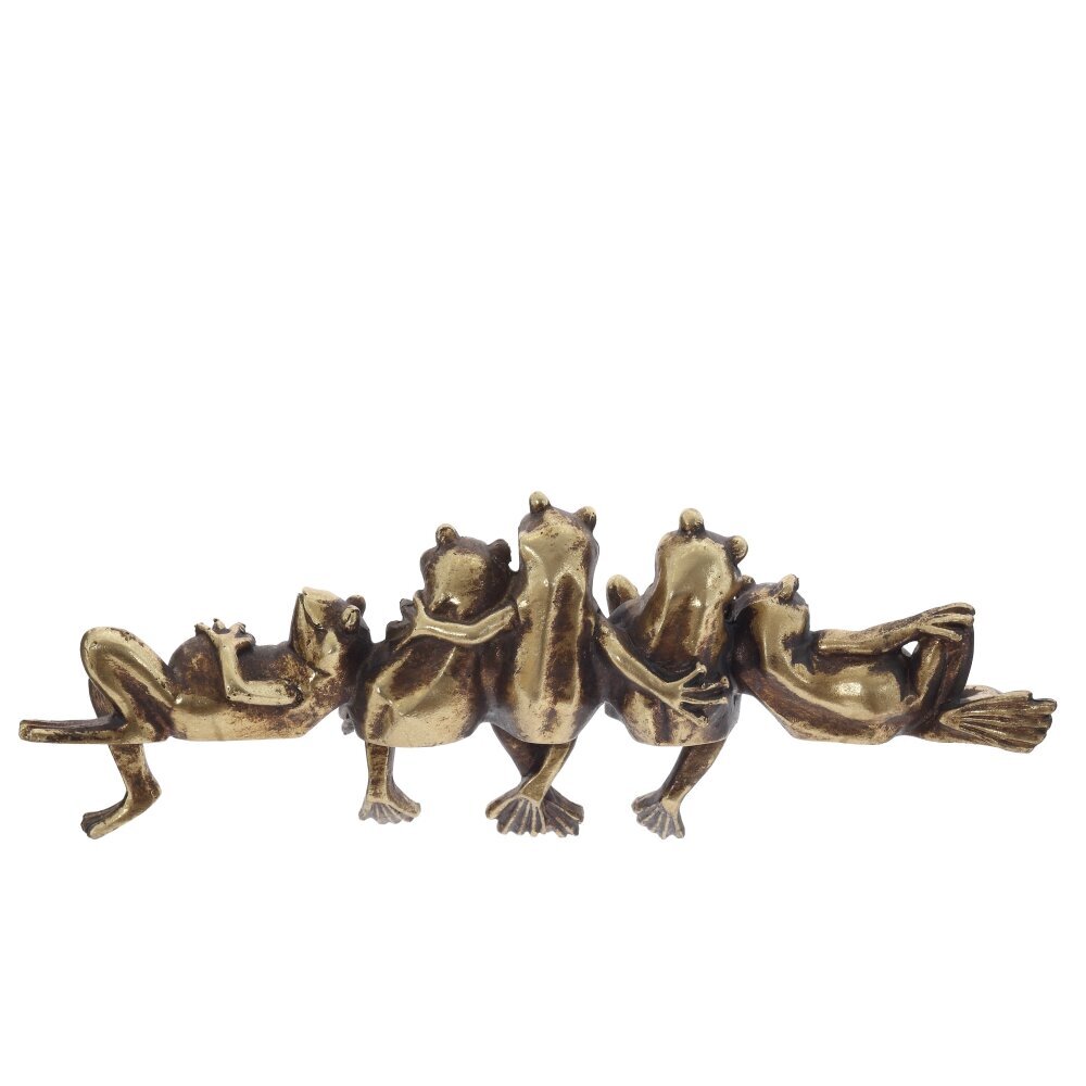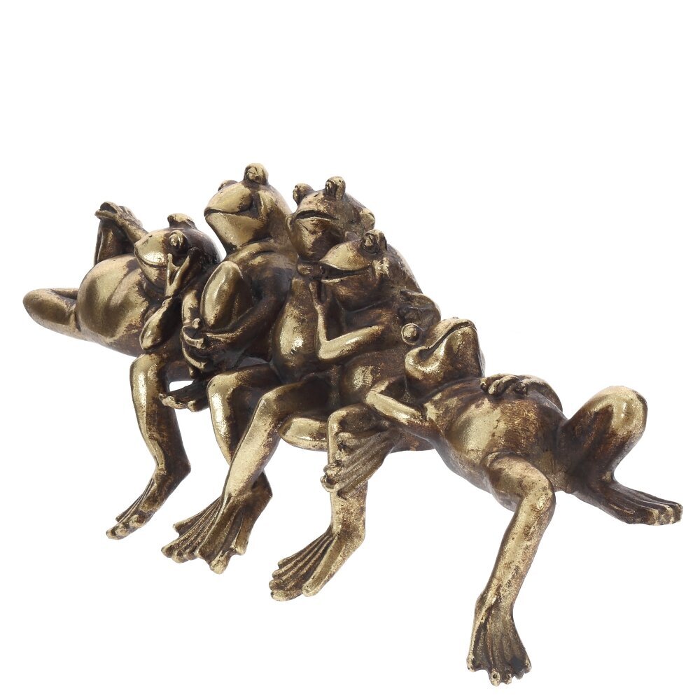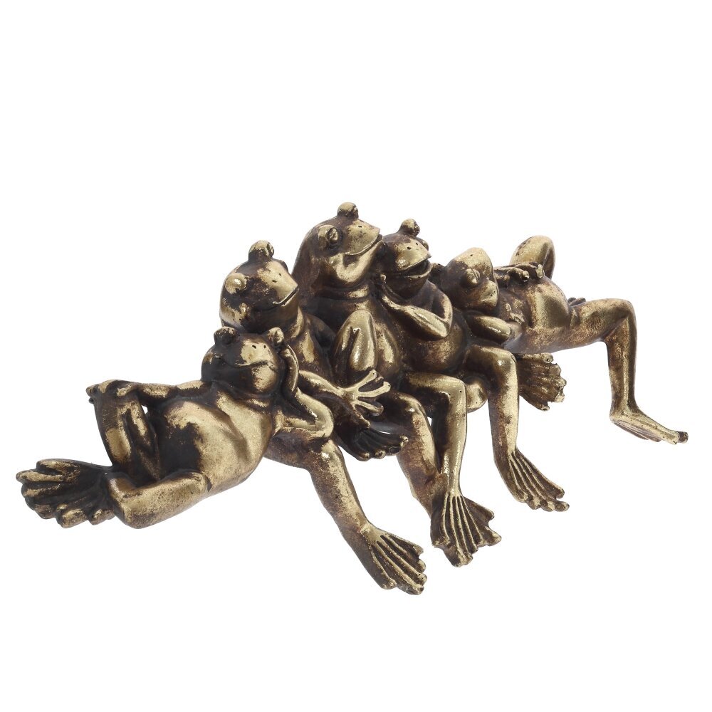 Декоративная фигурка «Лягушки» – эффектный акцент для интерьера с чувством юмора. На длинной композиции расположились пять забавных лягушат в расслабленных позах: они сидят, обнимаются и беззаботно лежат, создавая атмосферу отдыха и хорошего настроения. Фигурка выполнена из прочных полимерных материалов с покрытием под старинную бронзу, благодаря чему выглядит как мини-скульптура и гармонично вписывается в классический, современный или эклектичный интерьер. Подойдёт для оформления гостиной, кабинета, каминной полки или рабочей зоны, станет оригинальным подарком друзьям, коллегам и ценителям необычного декора.