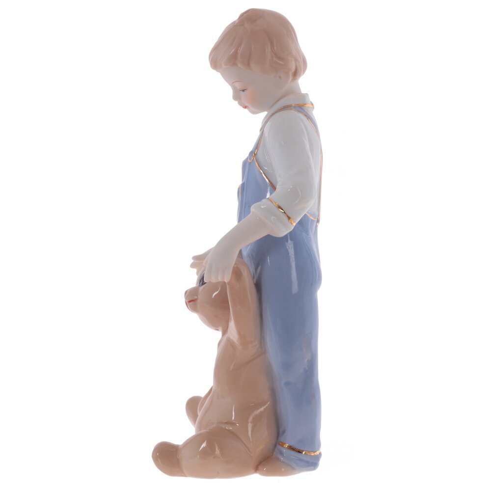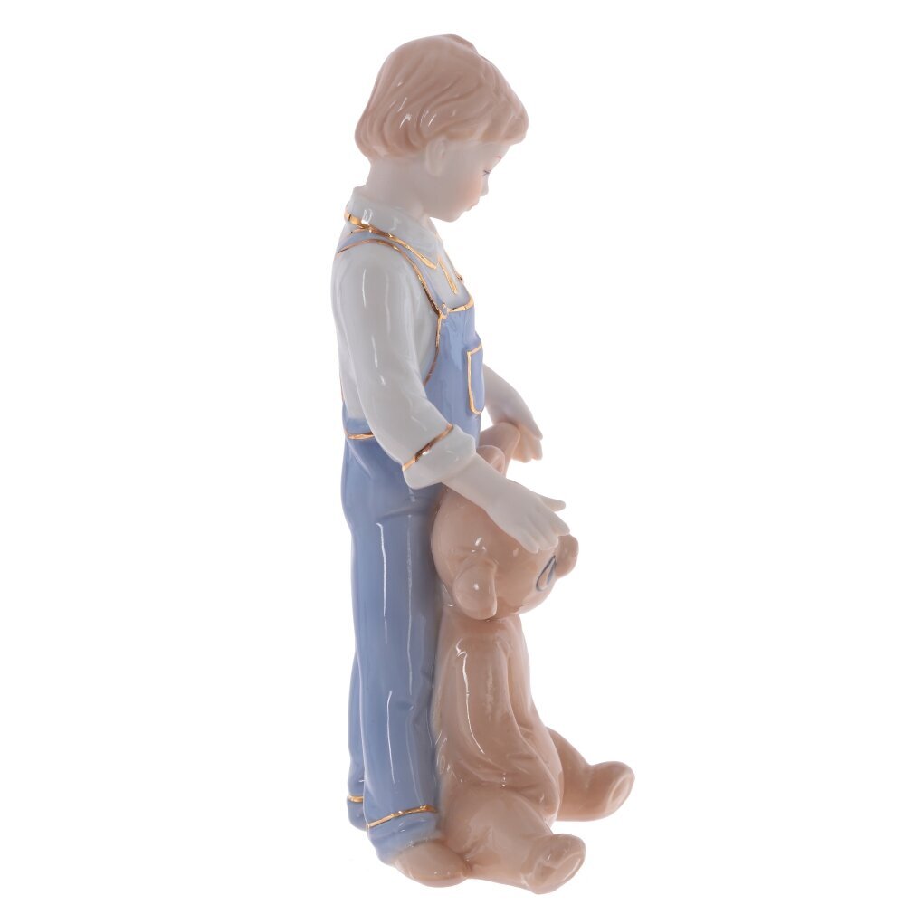 Декоративная фигурка "Мальчик" изготовлена из фарфора и представляет собой очаровательный элемент интерьера для любого помещения. Фигурка изображает милого мальчика, который держит игрушечного медведя, сидящего на полу. Этот нежный и трогательный момент запечатлелся во всей своей красоте и элегантности благодаря мастерству изготовителей. Детали фигурки проработаны с особым вниманием к деталям, а цветовая гамма придает изделию особую изящность. Фигурка станет прекрасным подарком для коллекционеров, любителей художественных изделий и просто для тех, кто ценит красоту и эстетику. Пусть этот образ напоминает вам о нежности и радости детства в любой момент.