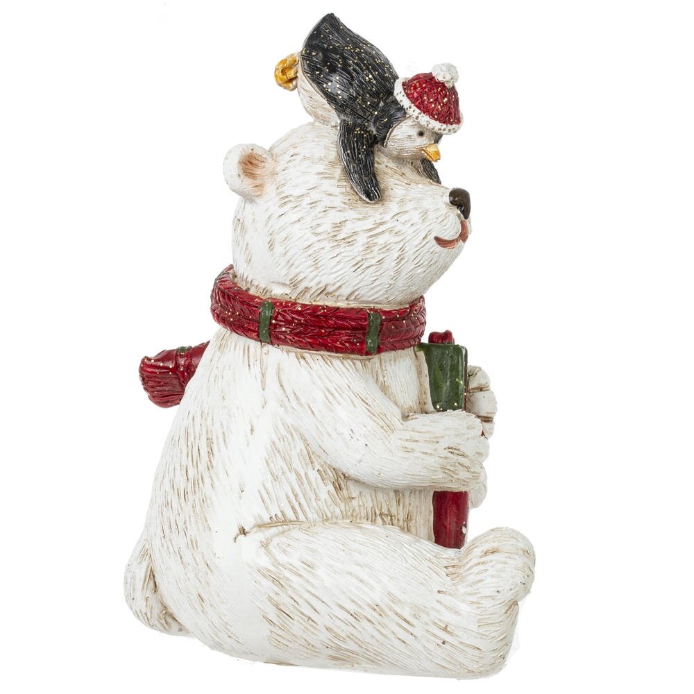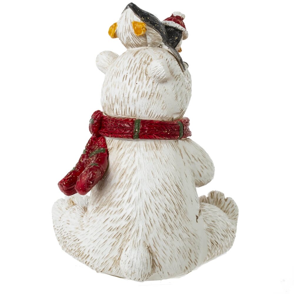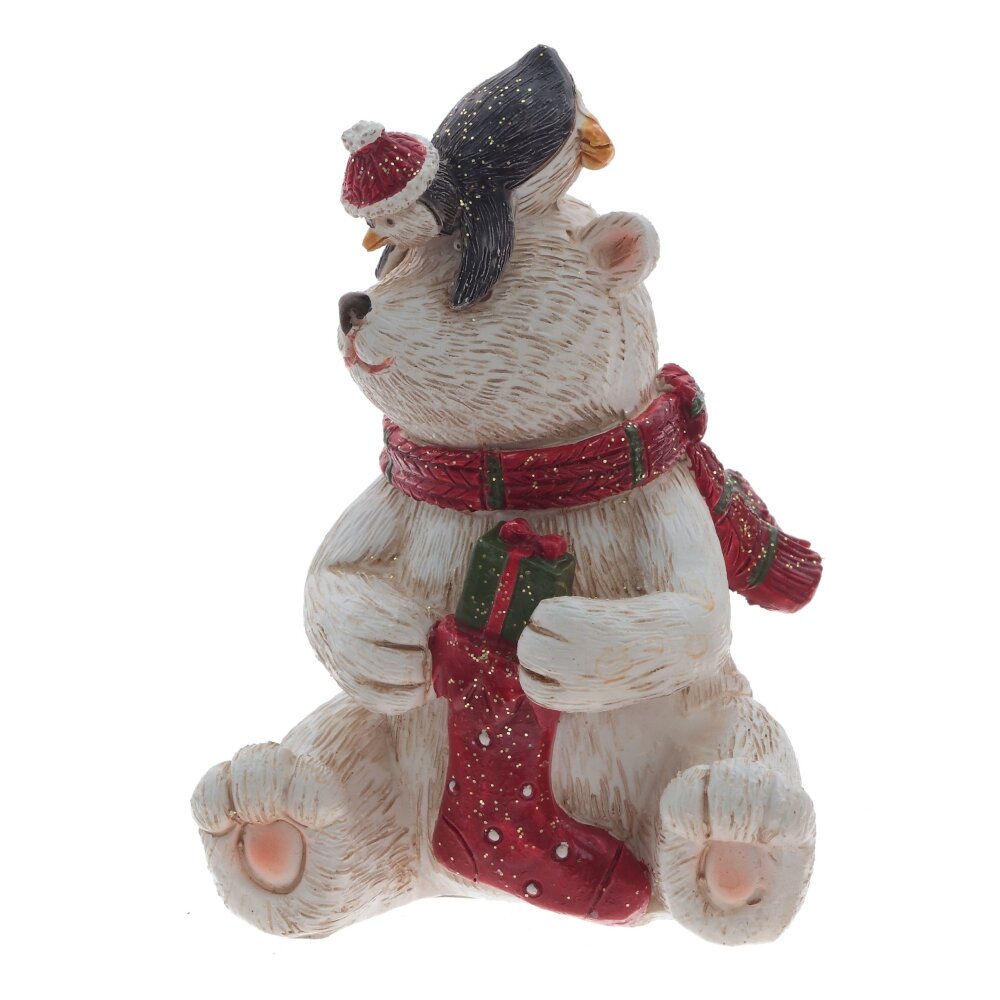Декоративная фигурка "Медвежонок" изображает трогательную сцену, где белый мишка и пингвин дарят друг другу подарки. Внимание к деталям, пастельные оттенки и яркие аксессуары создают атмосферу, идеально подходящую для новогоднего времени. Эта фигурка станет не только ярким украшением вашего интерьера, но и символом дружбы и радости. Как сувенир, она будет напоминать о волшебстве праздника, вызывая улыбки и положительные эмоции у всех, кто её увидит.