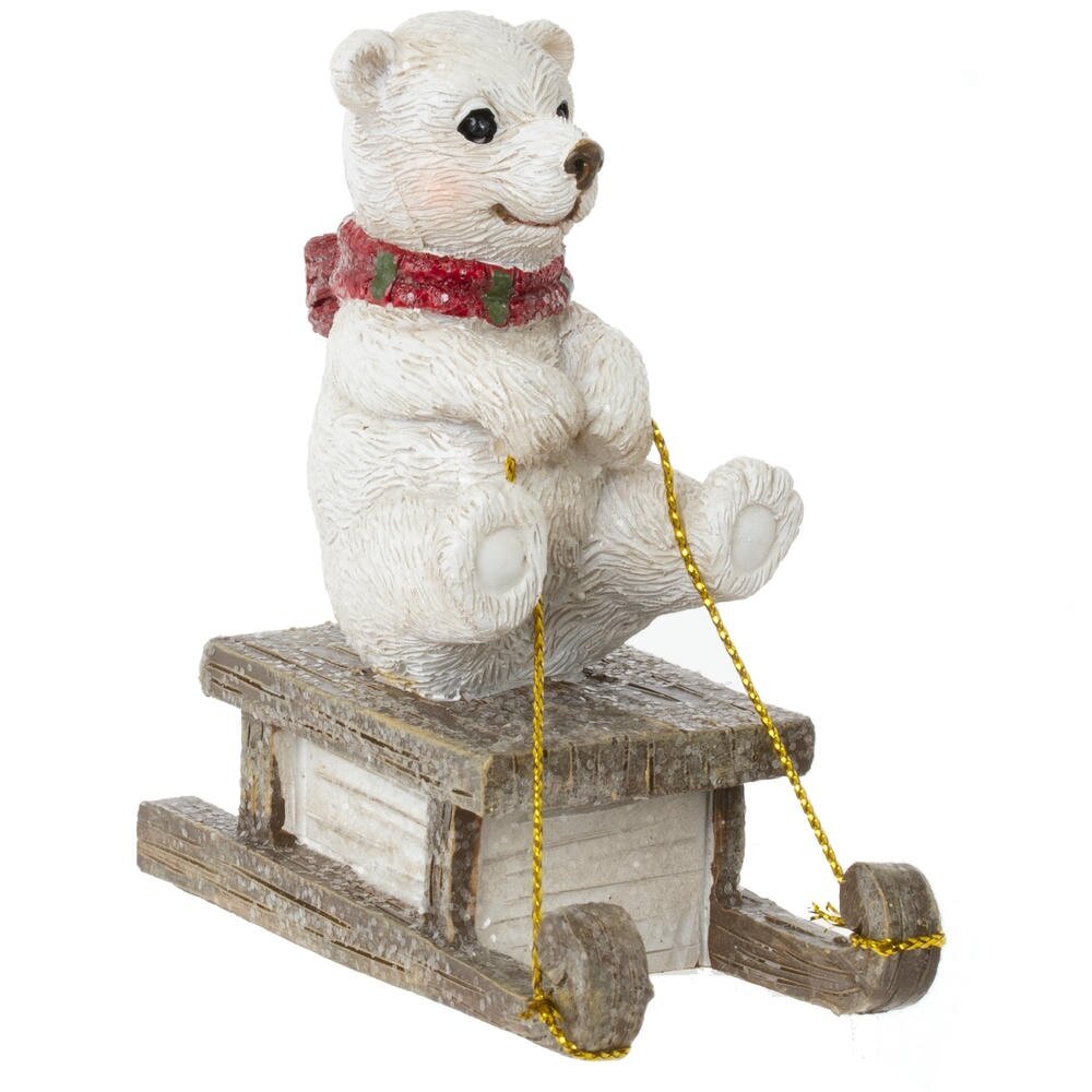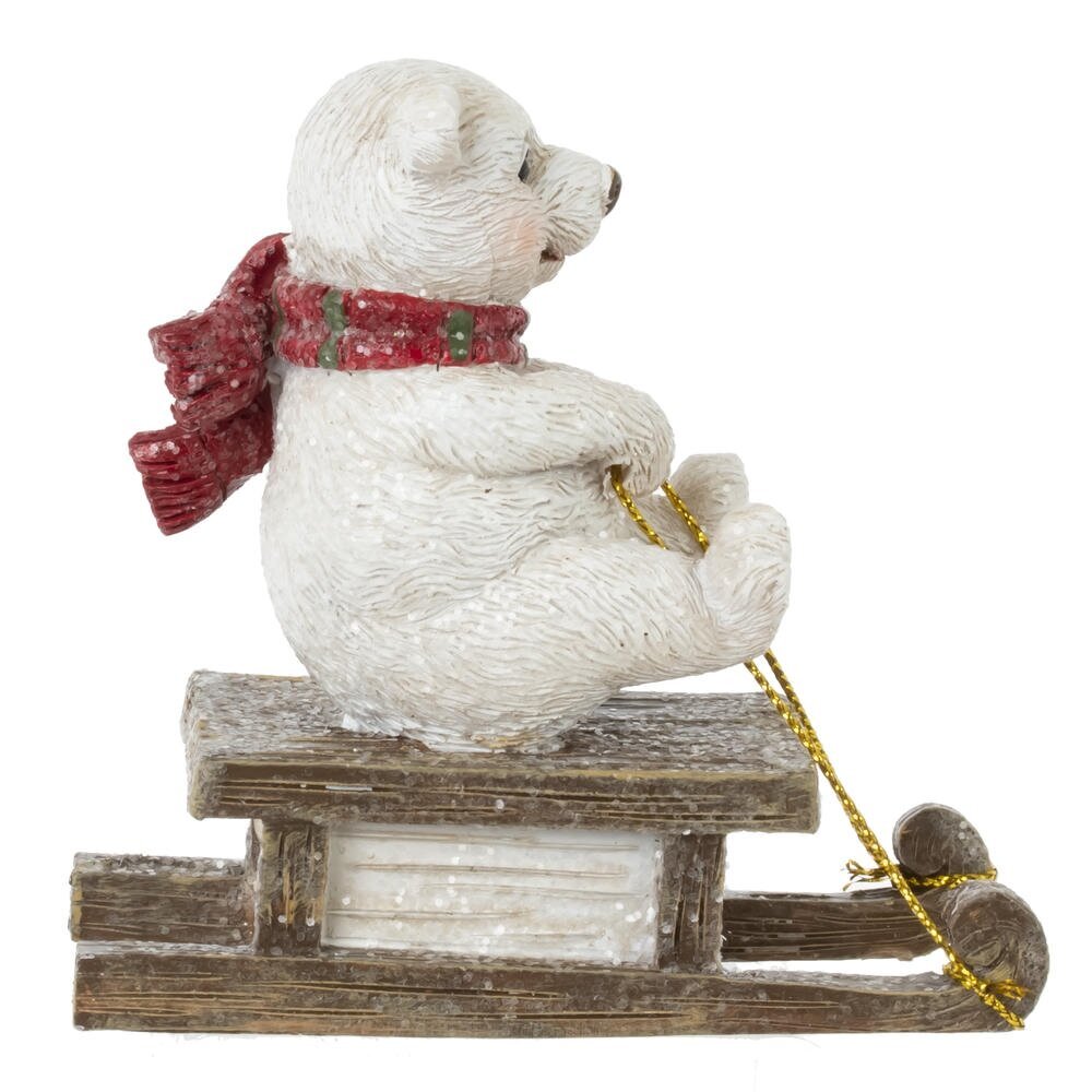 Декоративная фигурка "Медвежонок" станет прекрасным дополнением вашей новогодней коллекции. Компактный размер позволяет разметить украшение на полке, стеллаже, столе или камине. Милый белый медвежонок в красном шарфе, сидящий на санках, отличается высокой детализацией. Пастельные тона и снежный глиттер придают изделию особое очарование. Этот филигранный элемент декора создаст уютную атмосферу праздника и станет прекрасным подарком для близких.