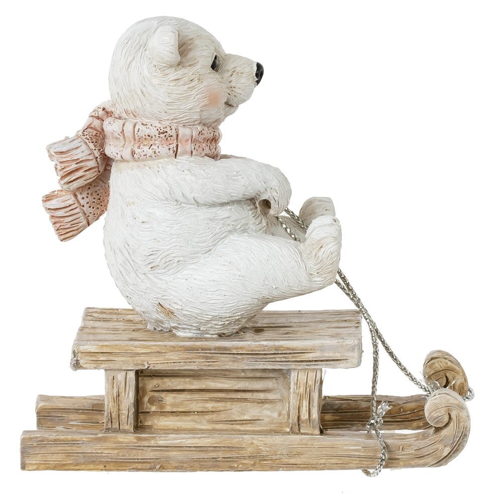 Декоративная фигурка "Медвежонок на санках" вызывает восторг и улыбки своим очарованием! Этот белый мишка в ярком шарфике весело катится на санках с ветерком, привнося в ваш дом атмосферу зимней радости. Тщательная проработка деталей подчеркивает выразительность персонажа. Эта фигурка станет стильным сувениром и уникальным украшением интерьера, привнося в него нотку детской беззаботности и волшебства зимних дней.