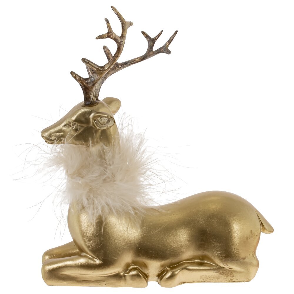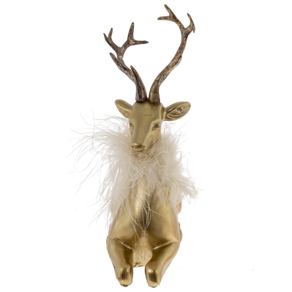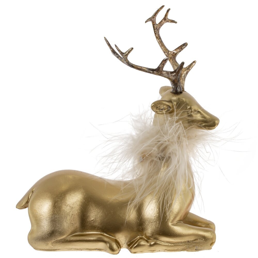 Декоративная фигурка "Олень" - это изысканное украшение для вашего интерьера. Изготовленная из качественных полимерных материалов в золотом цвете , эта фигурка придаст интерьеру неповторимый шарм и уют. Красивые золотые рога придают оленю особое очарование. Лежачая поза оленя дарит ощущение спокойствия и умиротворения. Высота фигурки с учетом рогов составляет 18 см, что делает ее идеальным элементом декора как для стеллажа, так и для кофейного столика или комода. Добавьте эту уникальную фигурку в свой дом, чтобы создать атмосферу природной красоты.