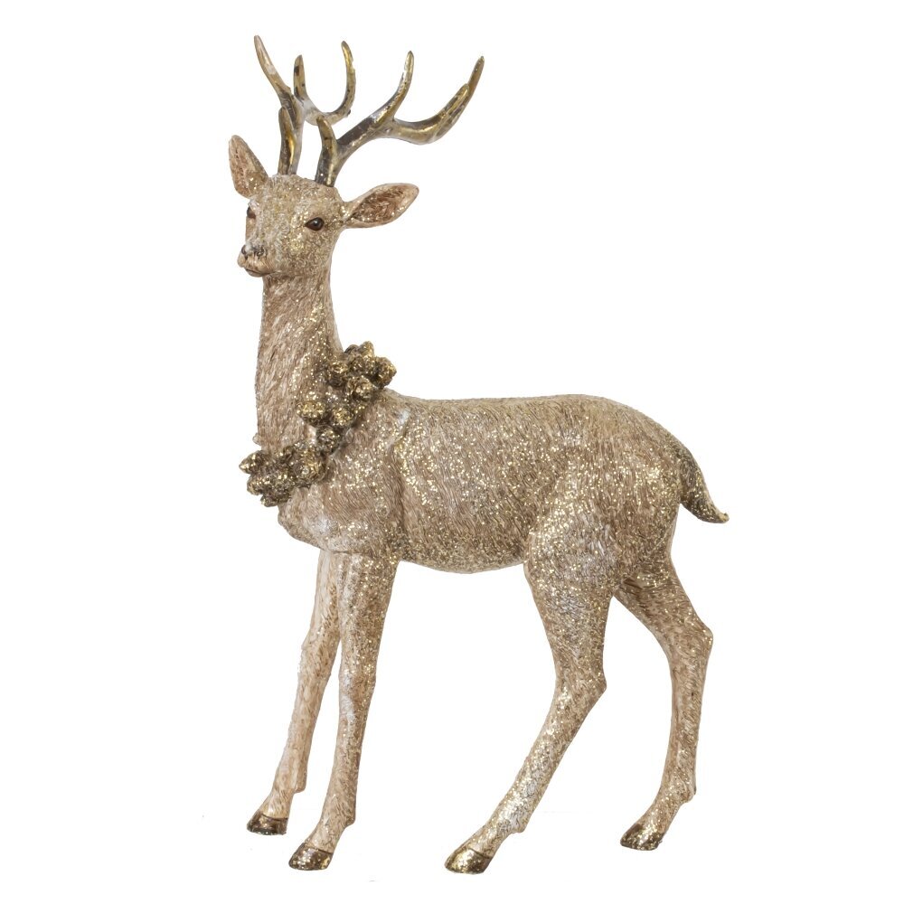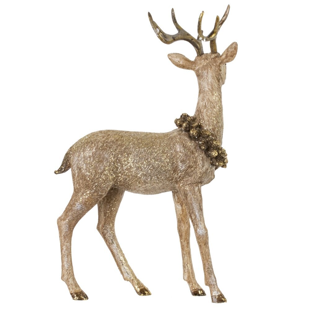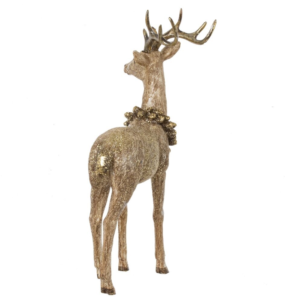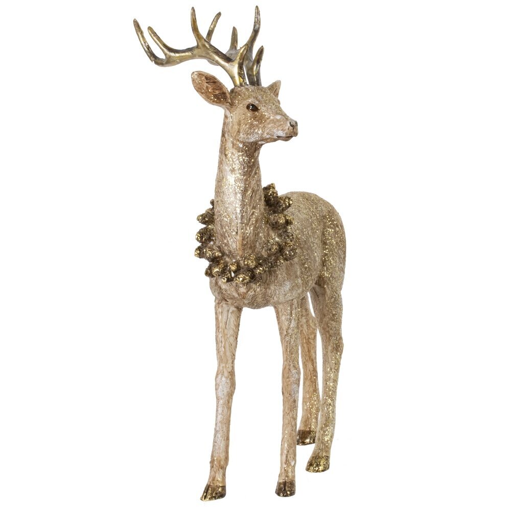 Величавый красавец - Олень из зимнего леса принесет в ваш дом настроение новогодней сказки. Фигурка изготовлена из полимерных материалов. Праздничными яркими штрихами стали золотые рога .