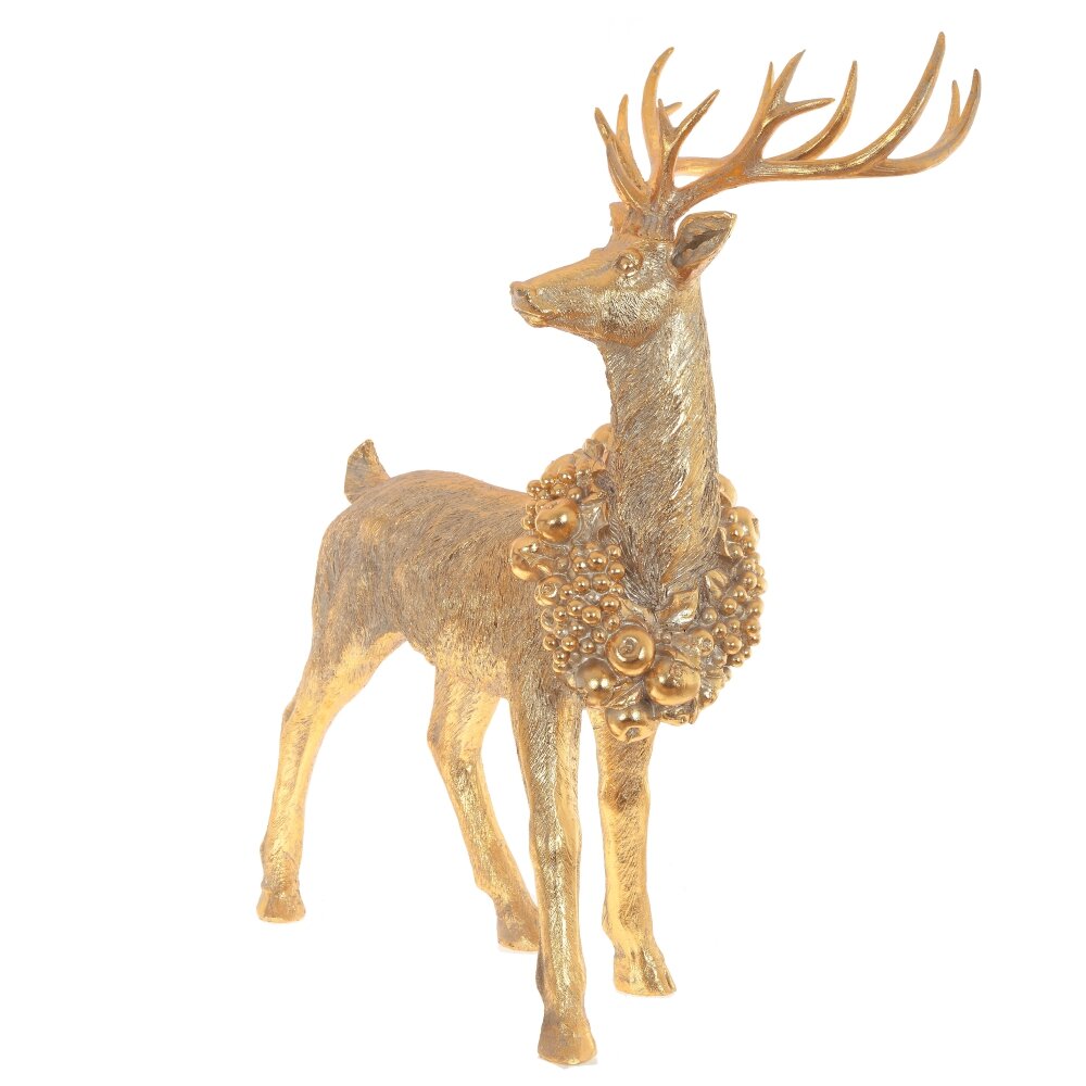 Этот благородный олень с рожденственским ожерельем на шее с удовольствием украсит своим присутствием ваш праздничный дом. Он замер в грациозной позе, позволяя любоваться его необыкновенной красотой.