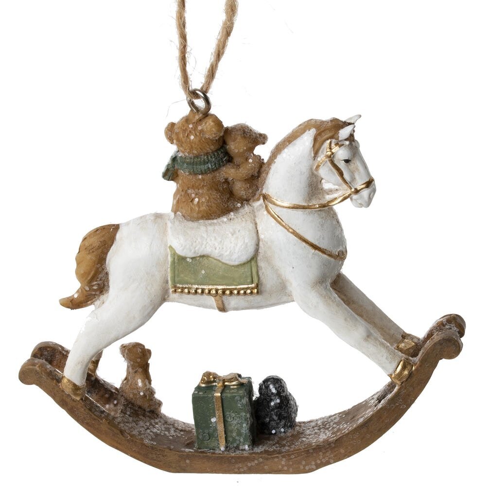 Декоративная фигурка "Лошадка-качалка" с подвесом — стильный и символичный элемент декора, который станет прекрасным подарком к Новому году или талисманом на удачу. Выполненная из полимерных материалов и окрашенная в белый цвет, фигурка символизирует энергию, силу и процветание. Лошадь традиционно ассоциируется с удачей и успехом в делах. Идеально подойдёт для оформления интерьера дома или офиса, а также станет оригинальным дополнением к новогодней композиции. Этот стильный сувенир будет радовать вас и ваших близких.