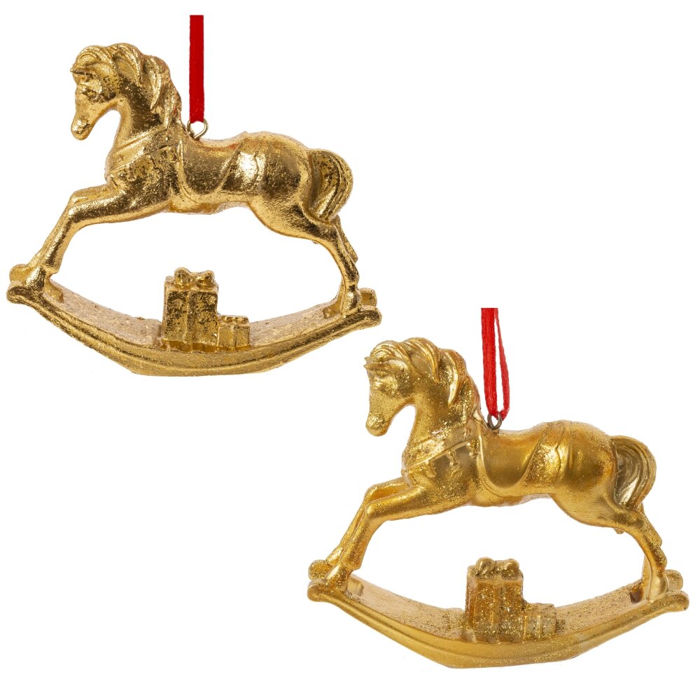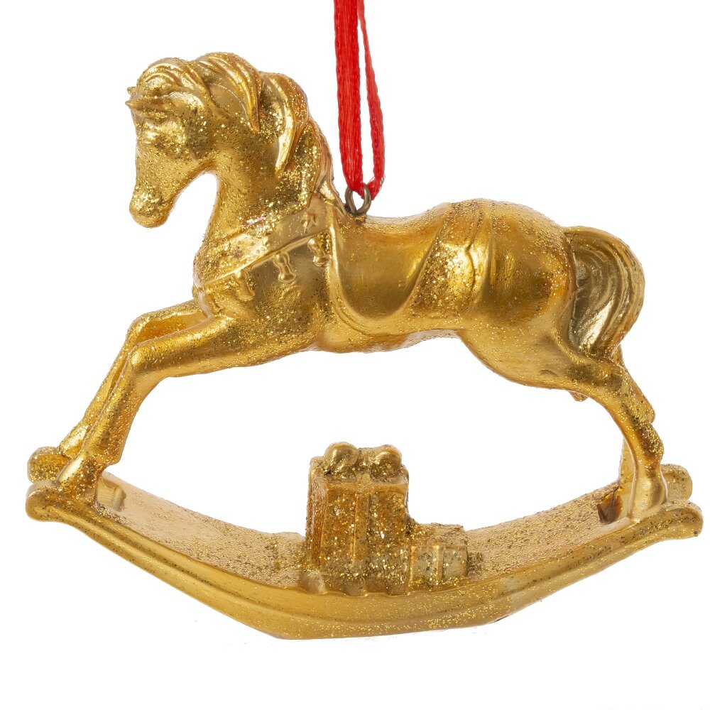 Набор из 2 новогодних украшений в виде "Лошадки". Идеально подходит для создания праздничной атмосферы в 2026 году, посвященного этой тематике. Изготовлено из прочных полимерных материалов, окрашено в золотой цвет. Отличный выбор для новогодних декораций, оформления интерьера и оригинальных подарков. Размеры изделия, как и другая информация, указаны в названии товара. Создайте волшебное настроение и добавьте очарования вашей новогодней вечеринки. Украшения станут прекрасным дополнением к праздничному декору, подчеркнут стиль и создадут атмосферу волшебства. Они могут использоваться для украшения елки, новогоднего стола или для создания тематических композиций.