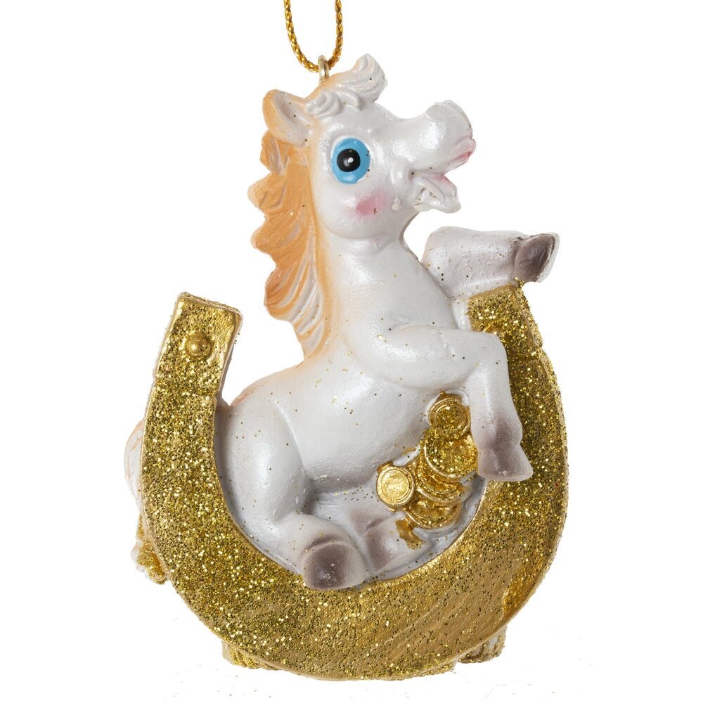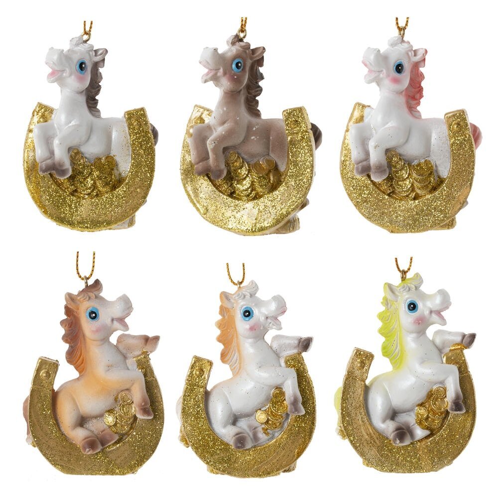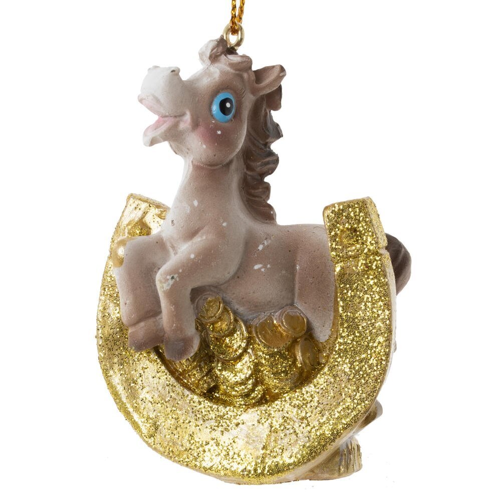 Декоративная фигурка с подвесом "Лошадка с подковой" — стильный и символичный элемент декора, который станет прекрасным подарком к Новому году или талисманом на удачу. Выполненная из прочного полимерного материала, фигурка символизирует энергию, силу и процветание. Лошадка с подковой традиционно ассоциируется с удачей и успехом в делах. Идеально подойдёт для оформления интерьера дома или офиса, а также станет оригинальным дополнением к новогодней композиции. Этот стильный сувенир будет радовать вас и ваших близких весь год. Фигурка представлена в 6 видах.
