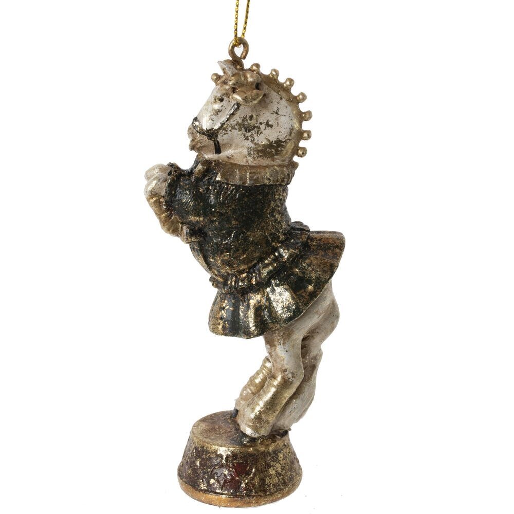 Декоративна фигурка с подвесом "Лошадь"— это изящный и стильный аксессуар, который украсит любой интерьер и добавит ему нотку благородства. Выполненный в благородном цвете, он отличается утончённым дизайном и гармоничными линиями, олицетворяющими грацию и силу этого благородного животного. Лошадь — символ энергии, стремления вперёд и удачи, а потому такой элемент декора может стать не только украшением, но и талисманом для дома. Данное изделие украсит интерьер или станет оригинальным подарком. Его можно использовать как самостоятельный элемент декора или в сочетании с другими аксессуарами в едином стиле. Это сочетание красоты и символизма будет радовать глаз каждый день.