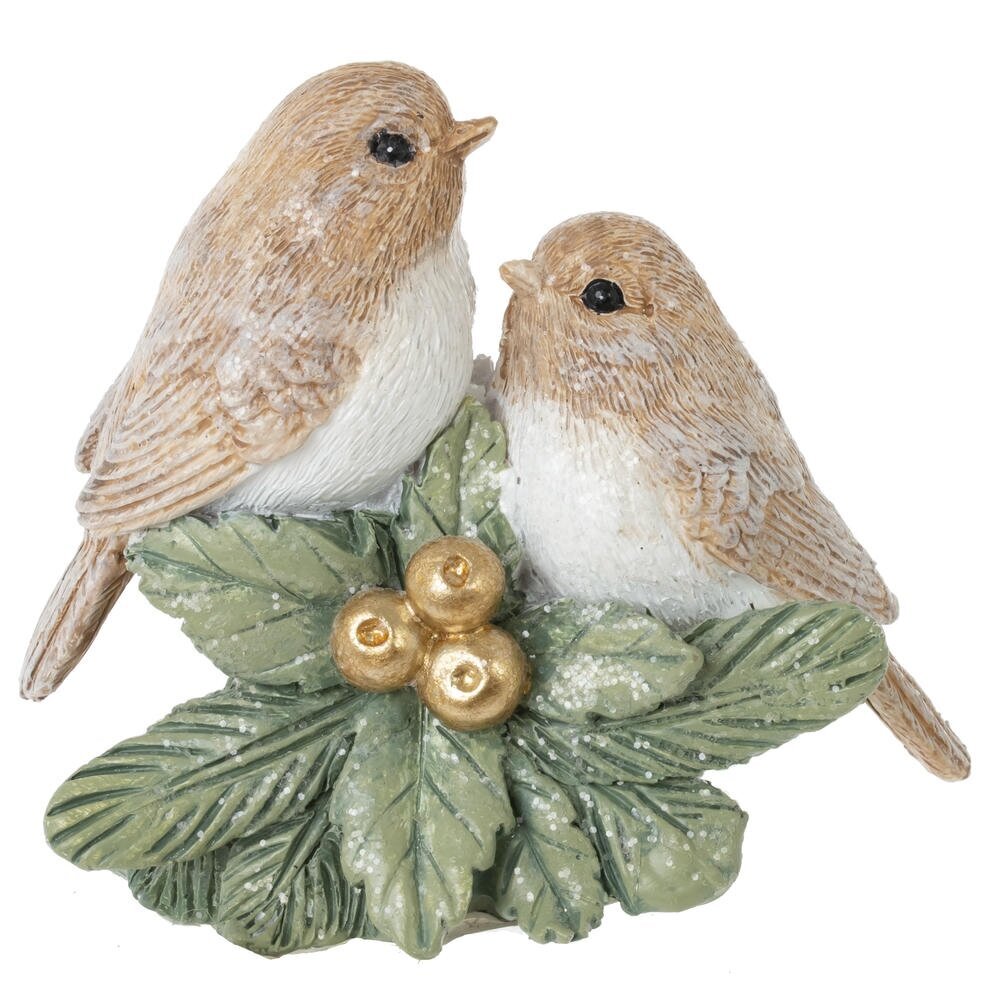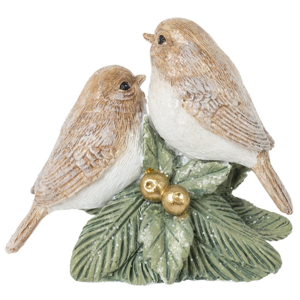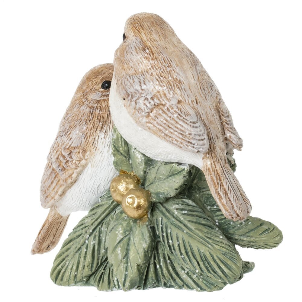 Декоративная фигурка "Птички" выполнена из полистоуна и порадует вас своими пастельными оттенками. Две реалистичные маленькие птички уютно расположились на веточке, украшенной ягодками, создавая атмосферу лесного очарования. Их детали искрятся глиттером, добавляя зимнего волшебства. Эта фигурка станет изысканным акцентом вашего интерьера, наполняя его природным обаянием. Она прекрасно впишется в любые стили декора, создавая настроение тепла и уюта.