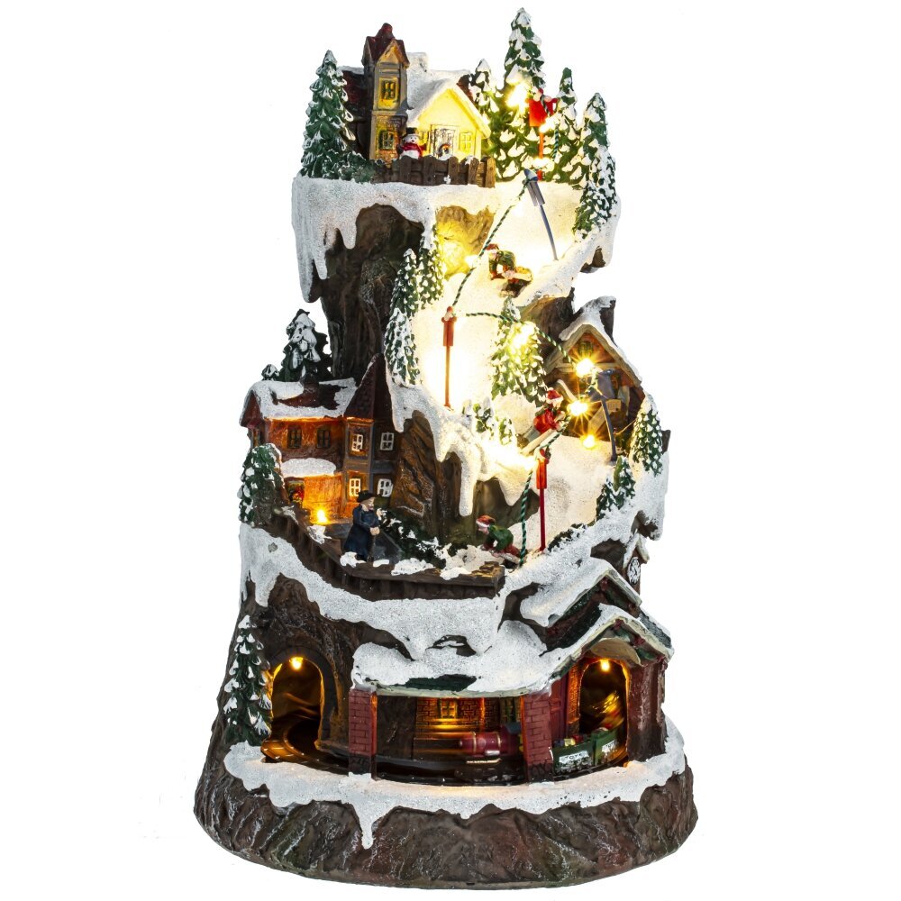 Новогодняя музыкальная композиция с подсветкой станет прекрасной декорацией к новогоднему убранству. Миниатюра демонстрирует сценку из жизни маленького городка, жители которого готовятся к встрече зимних праздников. Сияющие огоньки, движущиеся элементы и веселая музыка помогут композиции стать самой заметной частью праздничного декора. Работает от трех батареек АА (не прилагаются) и шнура питания Кабель USB 77.5 см, который входит в комплект.