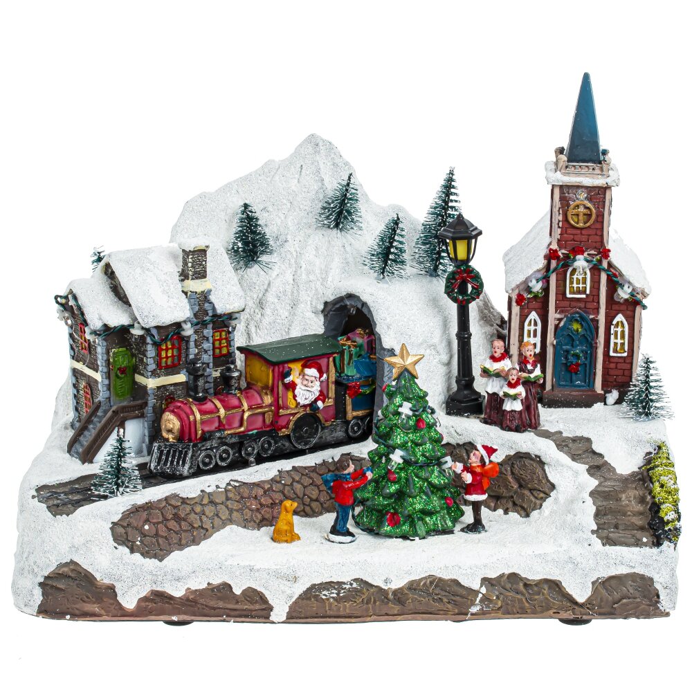 Новогодняя музыкальная композиция с подсветкой станет прекрасной декорацией к новогоднему убранству. Миниатюра демонстрирует сценку из жизни маленького городка, жители которого готовятся к встрече зимних праздников. Сияющие огоньки, движущиеся элементы и веселая музыка помогут композиции стать самой заметной частью праздничного декора. Работает от трех батареек АА (не прилагаются) и от шнура питания Кабель USB 100 см, который входит в комплект.